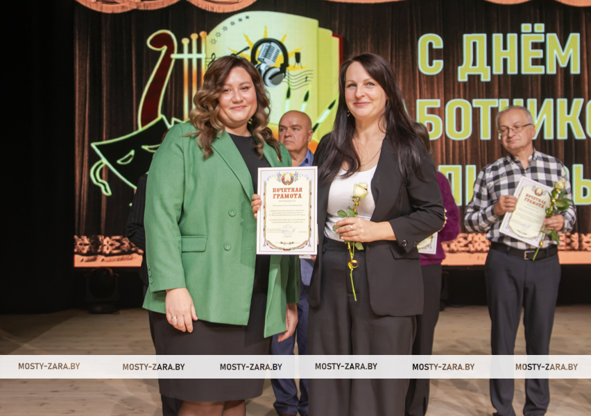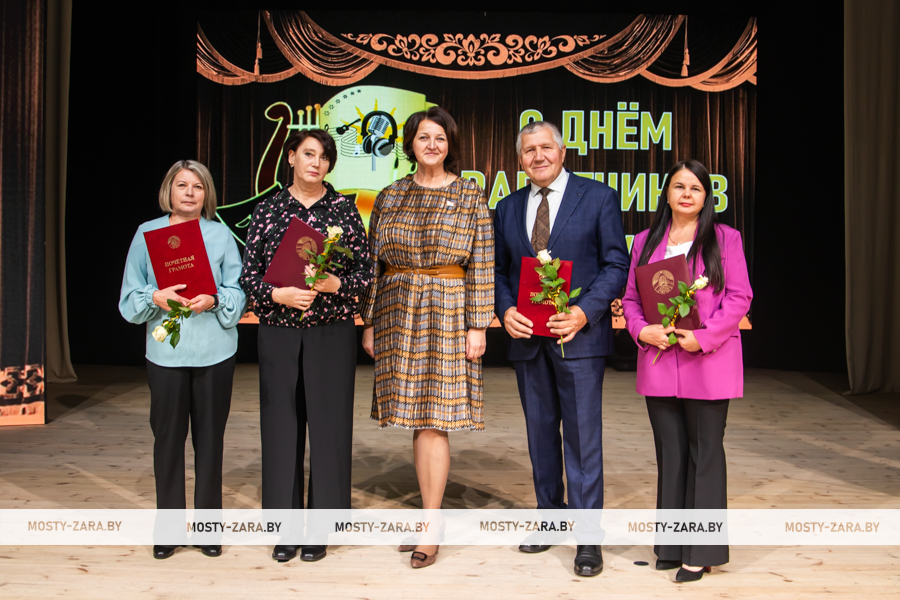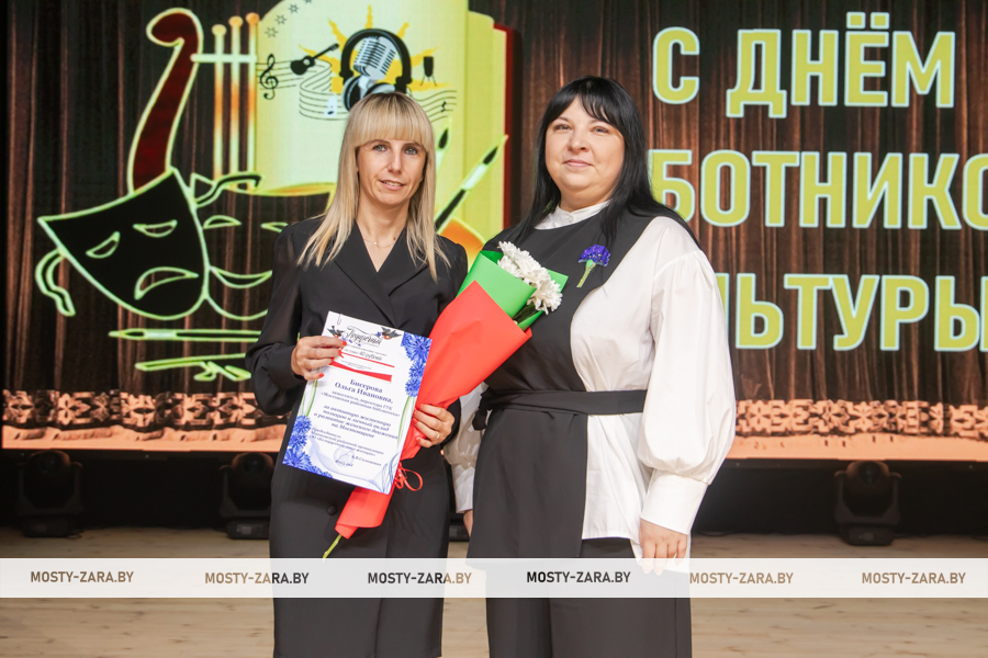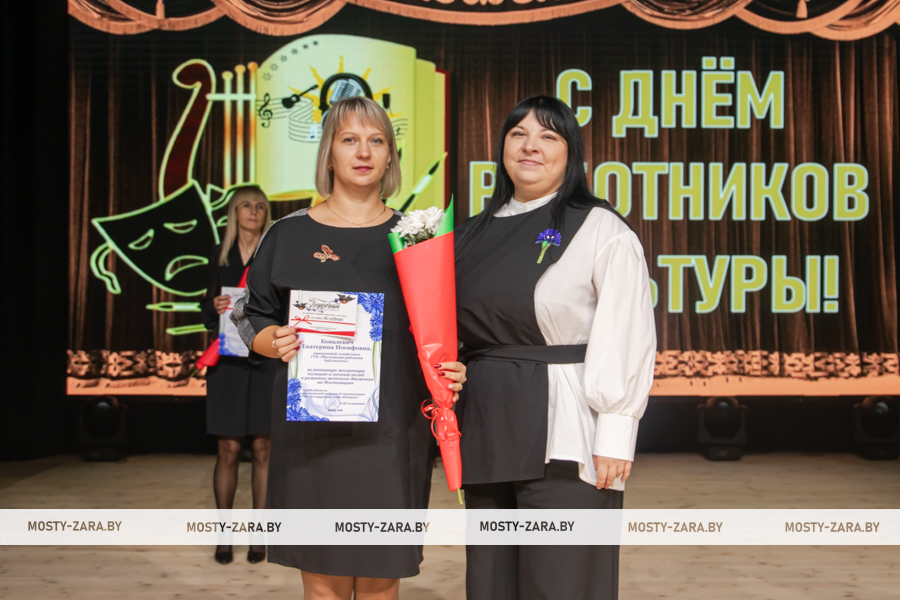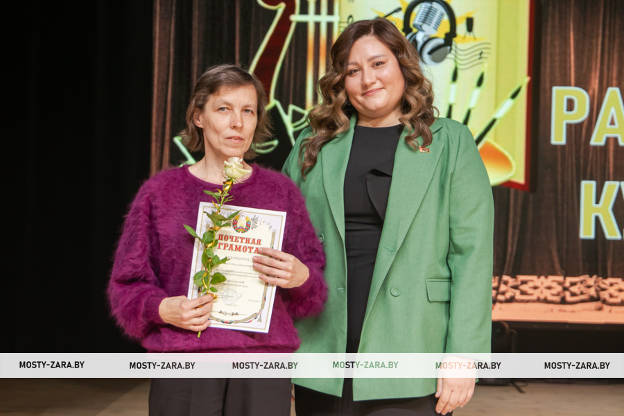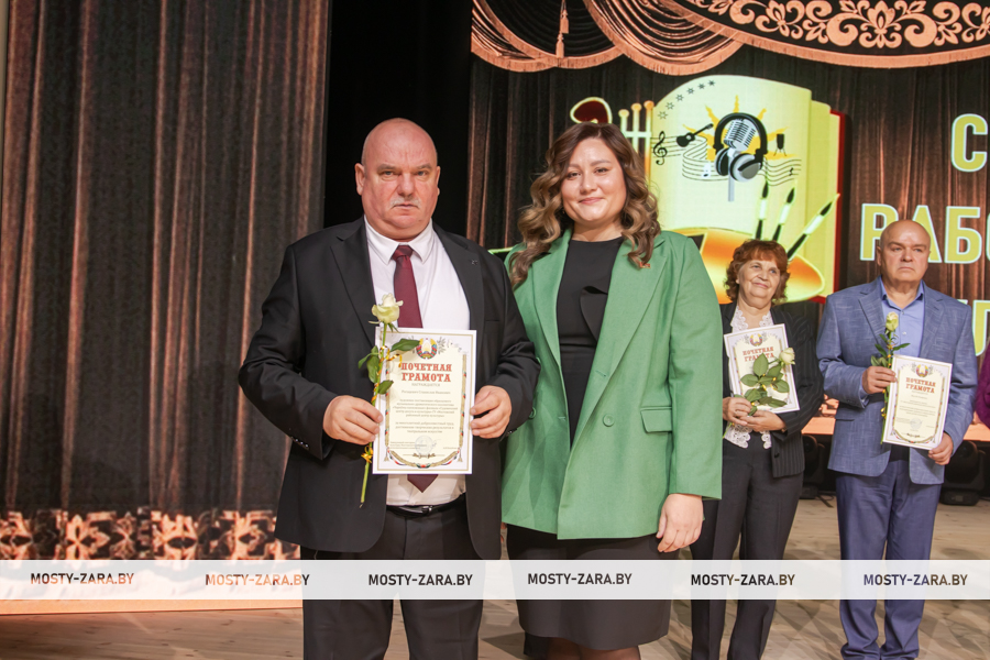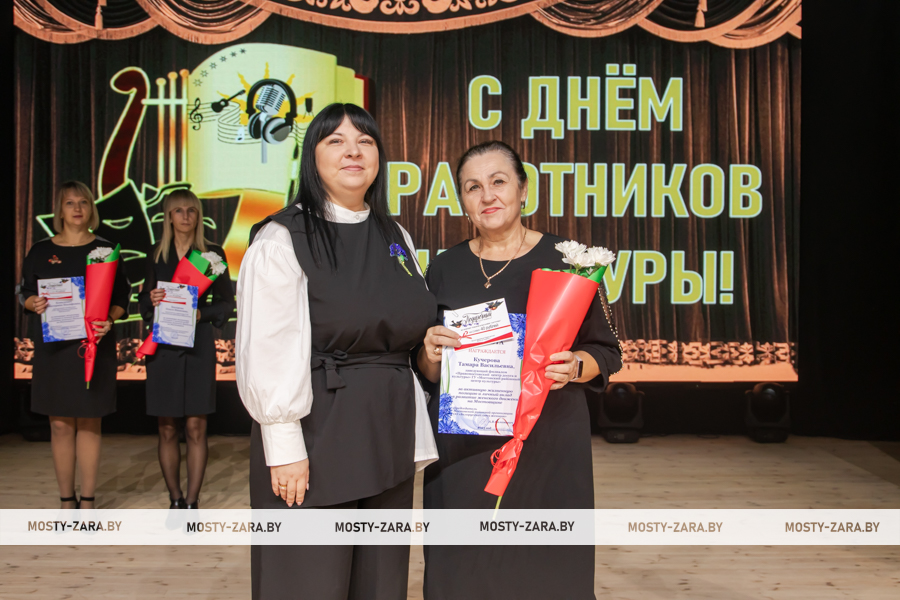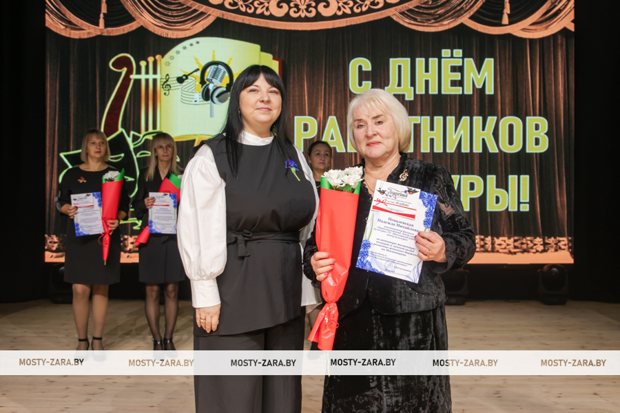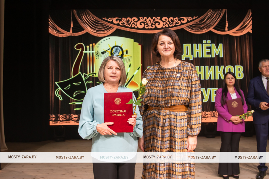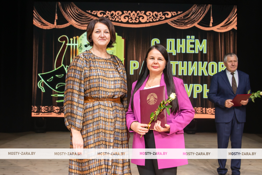 Заместитель председателя райисполкома вручила награды четырём работникам сферы культуры. Почётной грамотой Мостовского районного исполнительного комитета наградили культорганизатора филиала «Струбницкий центр культуры и досуга» Геннадия Рогацевича. Благодарность председателя райимсполкома объявили Светлане Щука, заведующему хозяйством Мостовского государственного музея «Лес и человек». Почётная грамота Мостовского районного Совета депутатов по праву досталась Терезе Черницкой, библиотекарю отдела формирования библиотечного фонда Мостовской районной библиотеки. Благодарственным письмом районного Совета депутатов наградили Людмилу Станевскую, музейного смотрителя Гудевичского литературно-краеведческого музея.