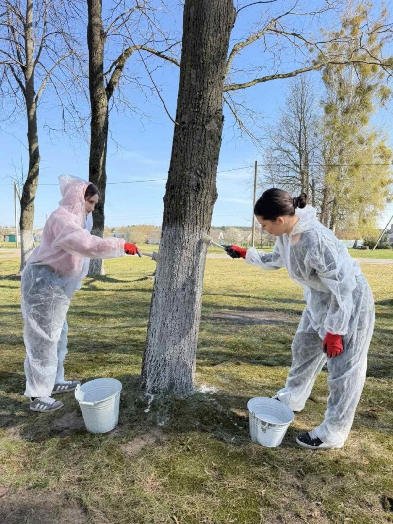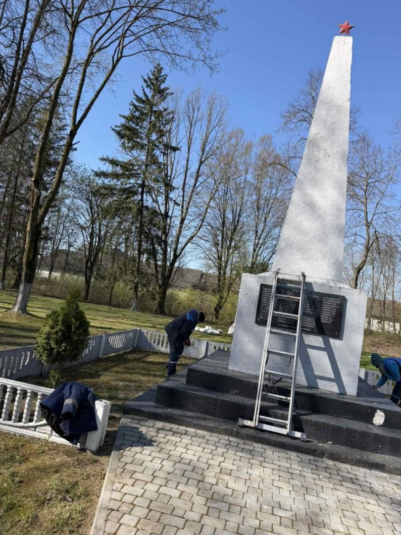 А сделать предстояло многое: навести порядок на мехдворе, обновить покраску, вымыть и вычистить все уголки, также пристальное внимание было уделено пямятным местам и воинским захоронениям. Не остался без внимания и парк - здесь сгребли прошлогоднюю листву, удалили сухую траву, побелили деревья.