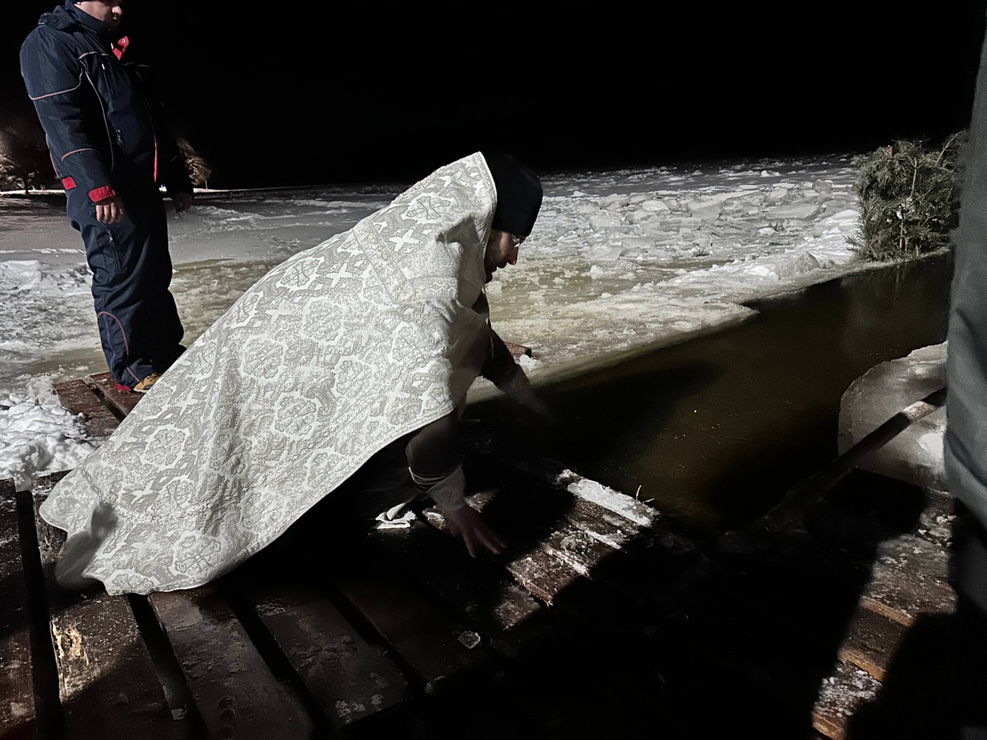 Ирина Станишевская ежегодно окунается в крещенскую прорубь. Поддержать её пришли муж и дочь. И пока она окуналась, муж рассказал, что ещё два дня назад стоял вопрос об отмене этой традиции, так как было лёгкое недомогание. Но воскресным утром смелая женщина решила не отказываться от события.