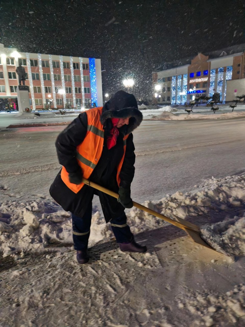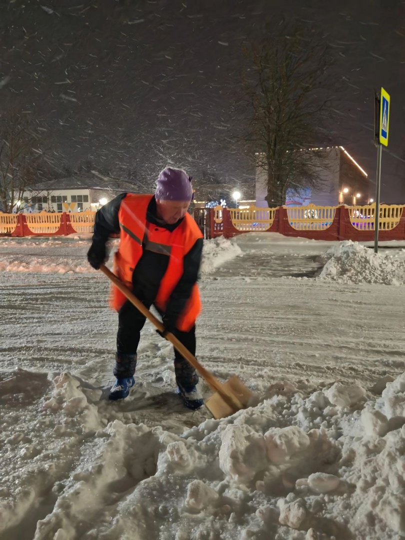 Работа ведётся непрерывно, силами уборщиков территорий и водителей спецтехники. Ситуация находится на постоянном контроле.