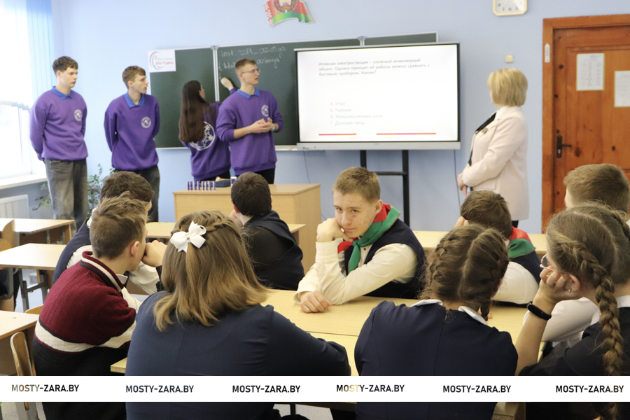 Ребята 5-6 классов химичили в прямом смысле – для них было подготовлено интерактивное занятие «Химия вокруг». Интересные факты о привычных вещах, которые нас окружают, настоящие опыты увлекли и всерьёз заинтересовали школьников. Интерактив «АЭС на ладони» и квиз «Где рождается электроэнергия» был предложен учащимся 7-8 классов.
