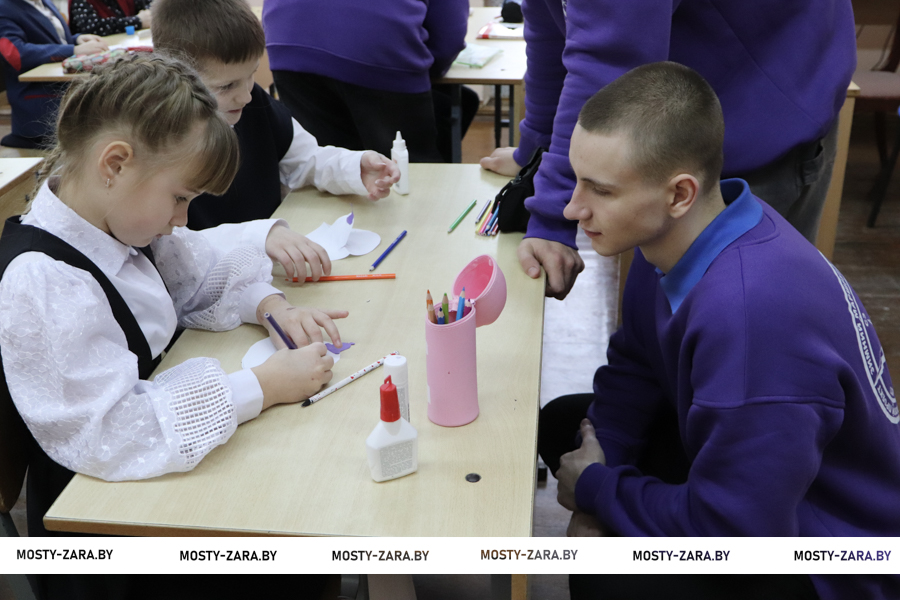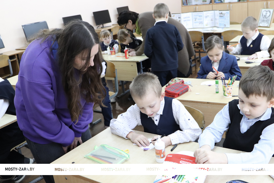И вот ребята разошлись по классным кабинетам, где их ждали увлекательные инициативы от «Азімых». Учащиеся начальных классов стали участниками образовательно-игровой программы «Моя Беларусь» и мастер-классов по изготовлению поделок. А чтобы снять усталость и размяться – энергичная физкультминутка.