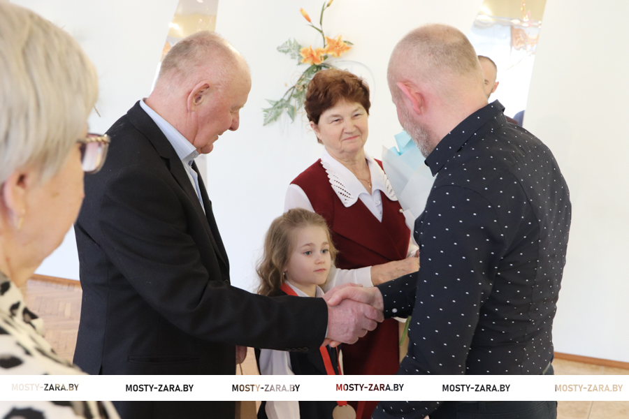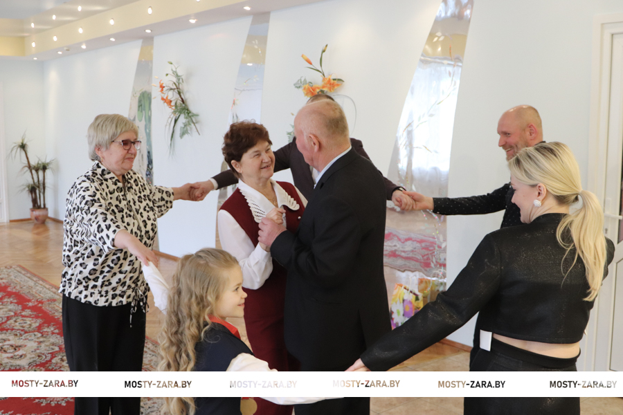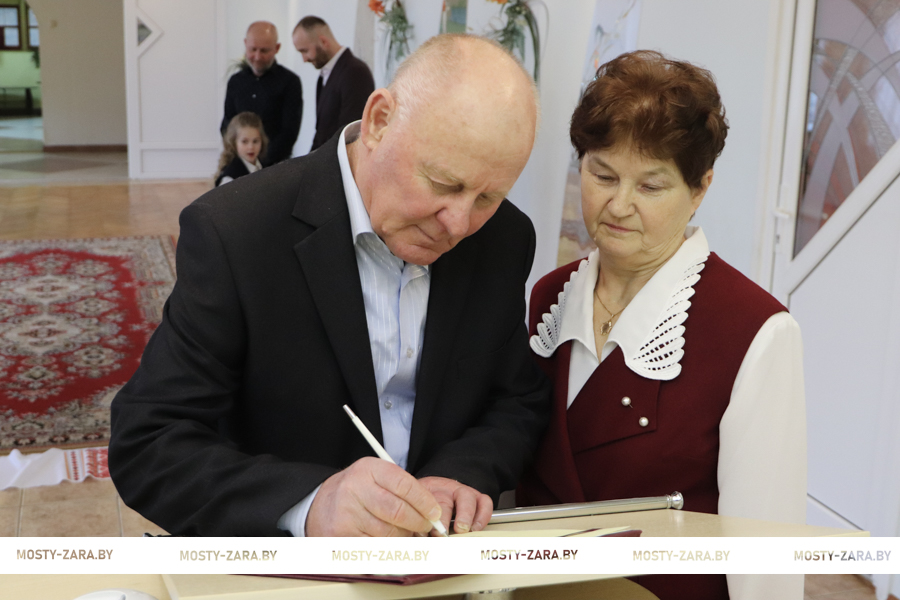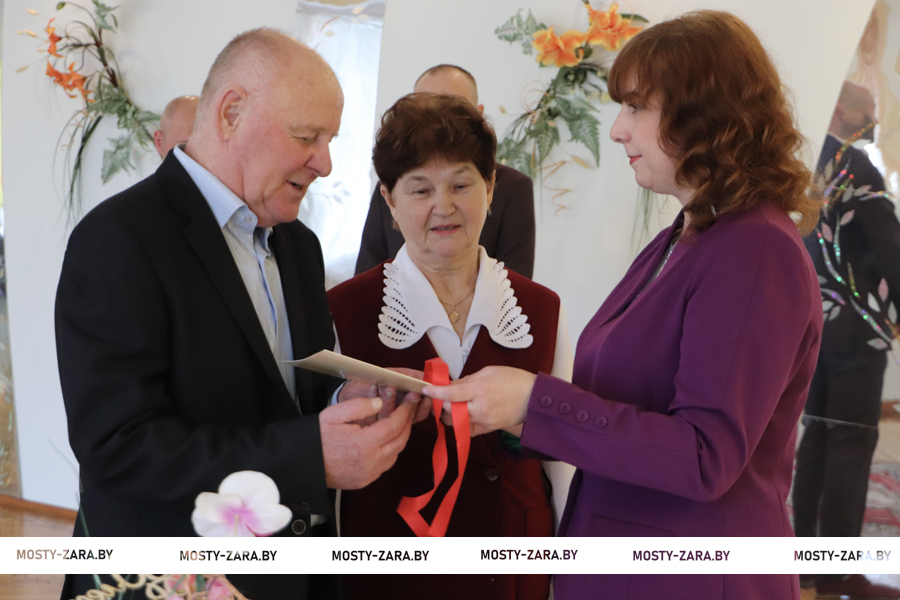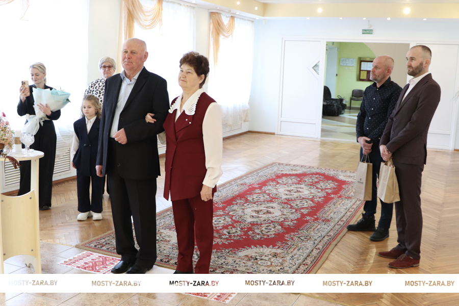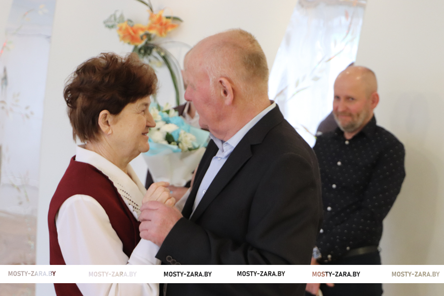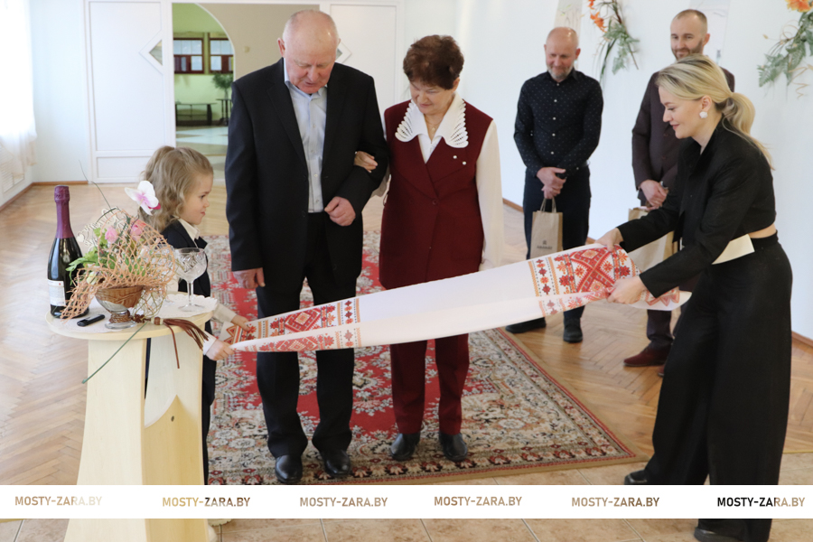 Как и полагается молодожёнам, даже «золотым», они встали вместе на ручник, символизирующий долгую супружескую жизнь, испили напиток любви, зажгли огонь домашнего очага и станцевали семейный танец. А «горько» им кричали дети, внуки и родные! По традиции имена юбиляров занесены в Почётную книгу отдела загса Мостовского райисполкома, а им на память о торжественном моменте вручены памятная медаль и «золотое» свидетельство, подтверждающее их почётный и уважаемый статус. В планах на дальнейшую жизнь – вместе встретить бриллиантовую и королевскую свадьбы!