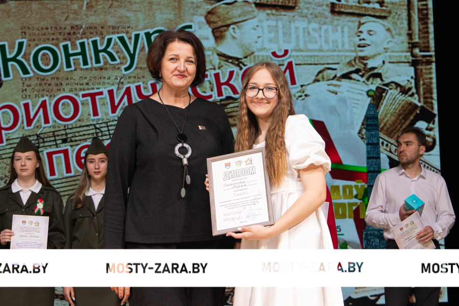 26 апреля сопрано, теноры и баритоны на сцене Мостовского РЦК в унисон спели о любви к Родине ‒ так прошёл конкурс патриотической песни, организованный райкомом БРСМ и посвящённый 80-летию Победы.