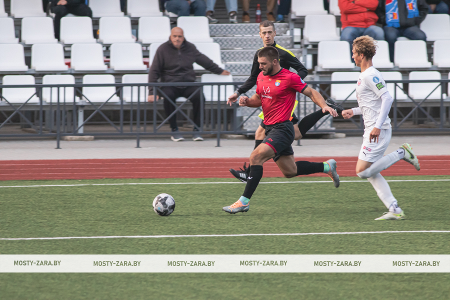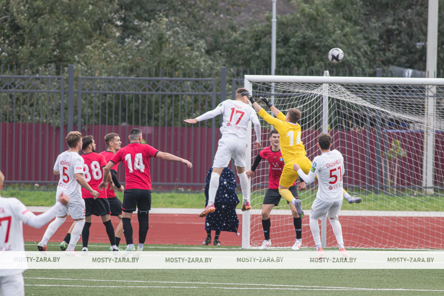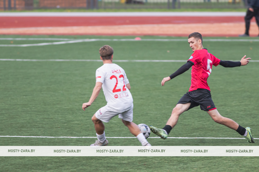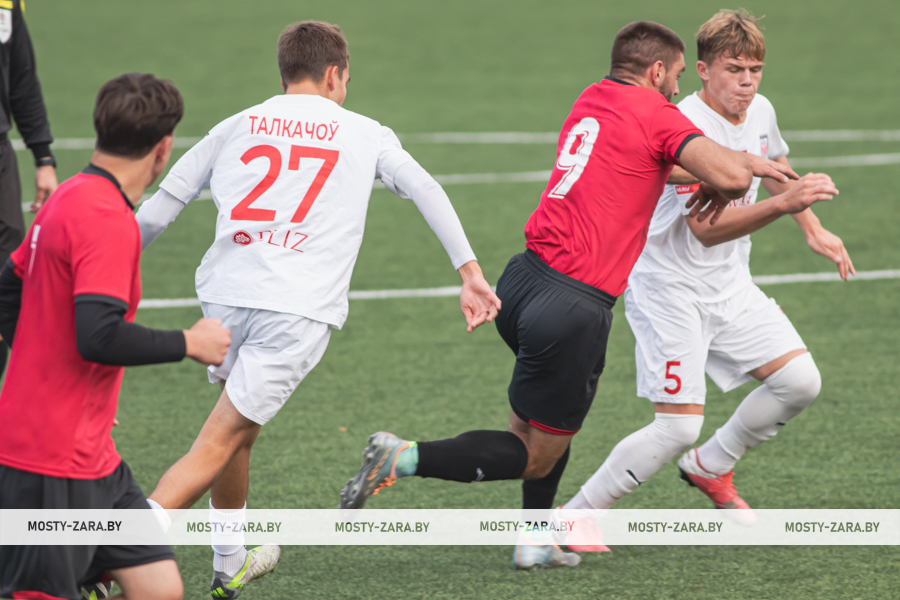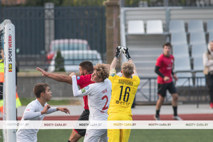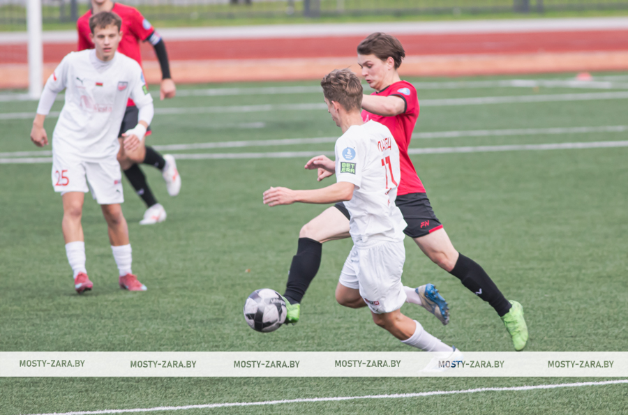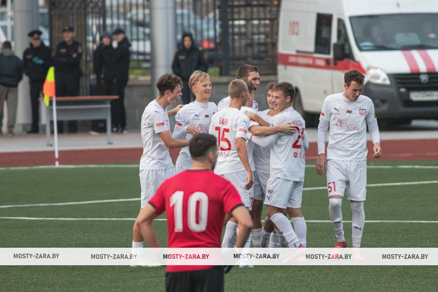 Соперником мостовчан в это воскресенье были молодые и охочие до побед юные футболисты из Минской области. Несмотря на обилие поражений в чемпионате дублей, команда предстала на первых минутах организованной машиной, особенно в защите: чёткое построение линий, высокий блок, грамотная подстраховка и персональная опека отдельных футболистов (нашим вингерам точно пришлось несладко). Даже юркий и вездесущий Даниил Копач, обычно успешно карауливший ошибки защитников, часто натыкался сразу на двух игроков соперника, как только получал мяч.