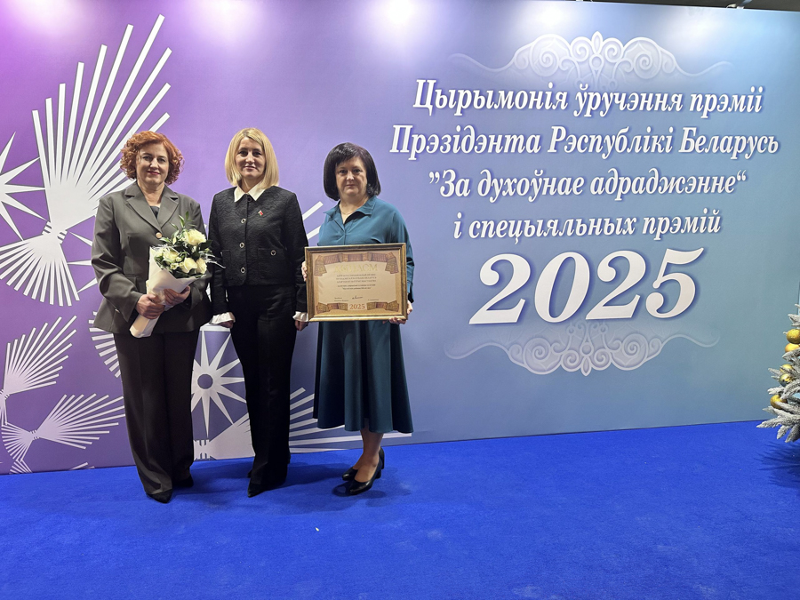 8 студзеня 2026 года ў Палацы Рэспублікі адбылася ўрачыстая цырымонія ўручэння прэміі Прэзідэнта Рэспублікі Беларусь “За духоўнае адраджэнне” і спецыяльных прэмій дзеячам культуры і мастацтва за значныя дасягненні ў галіне музычнага, тэатральнага, кінематаграфічнага, дэкаратыўна-прыкладнога і харэаграфічнага мастацтва, бібліятэчнай справы, навучання і выхавання творчай моладзі, а таксама спецыяльных прэмій “Беларускі спартыўны Алімп”.
