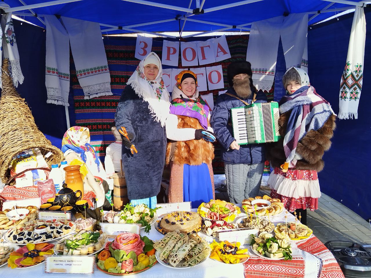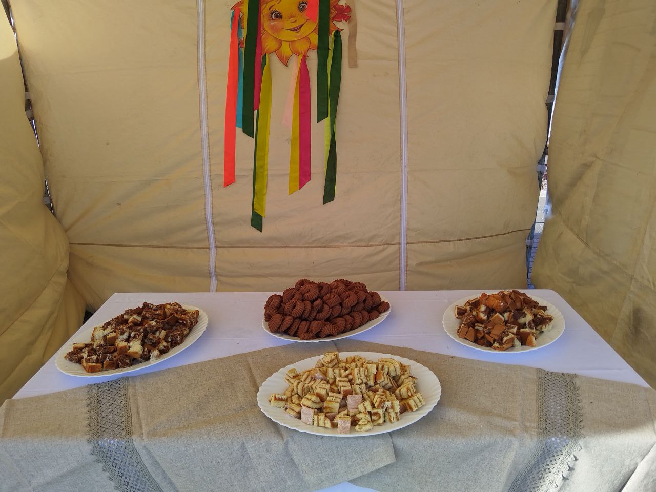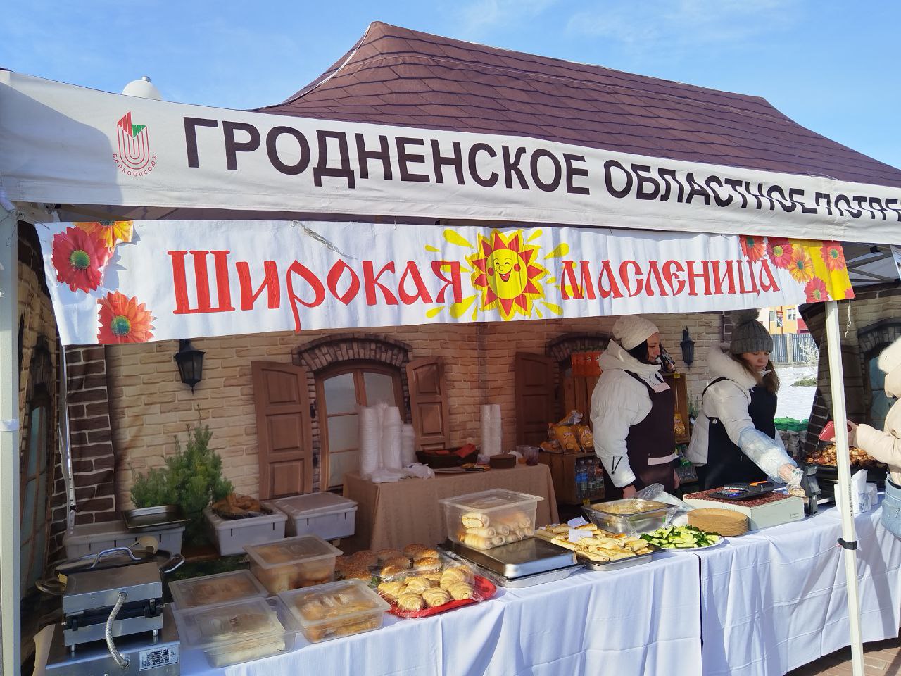 Здесь же можно угоститься вкусными блинами с различными начинками и свежеприготовленным шашлыком, согреться горячим кофе, чаем и глинтвейном – такие угощения предлагает выездная торговля Мостовского филиала облпотребобщества и индивидуальные предприниматели.