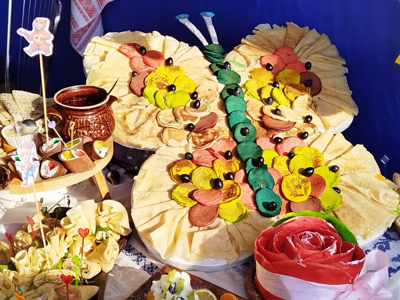 Вот где постарались хозяюшки – удивляли, как говорится, и внешним видом, и содержанием, и вкусовыми качествами представленных блинных шедевров. И чего здесь только не было! Можно было попробовать и получить рецепт блинных роллов, разноцветных блинных мешочков и ажурных блинов, уникальных блинных тортов и других изысков.