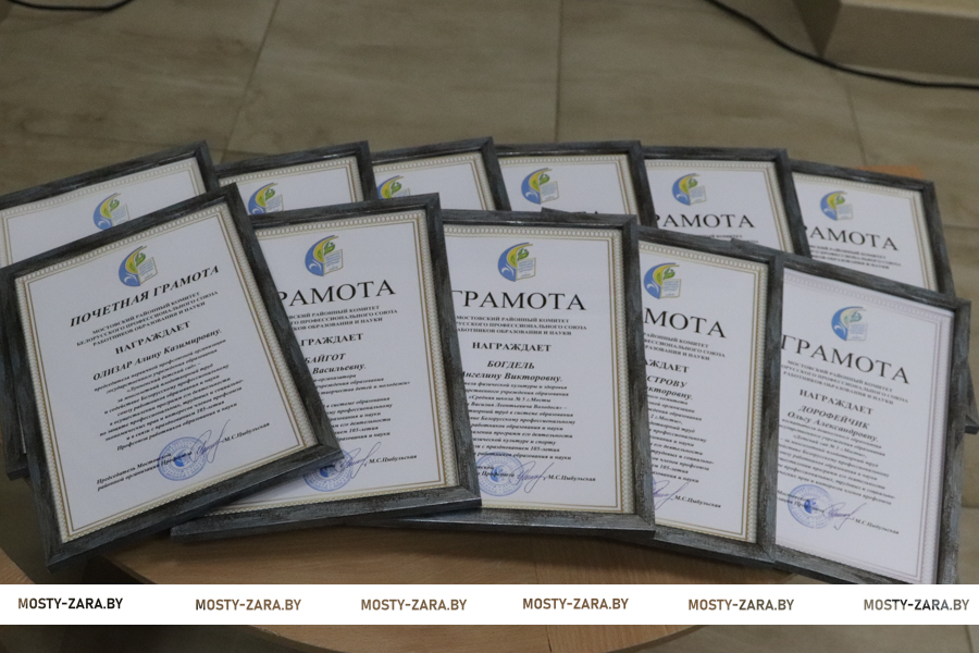 Завершилось заседание церемонией награждения. За многолетний плодотворный труд и содействие Белорусском профсоюзу работников образования и науки в осуществлении его деятельности по защите профессиональных, трудовых и социально-экономических прав и интересов членов профсоюза грамоты районного комитета были вручены профсоюзным активистам: Алине Олизар, Ольге Байгот, Ангелине Богдель, Оксане Бурмистровой, Ольге Дорофейчик, Марии Ланец, Елене Литвин, Оксане Ромашко, Александру Сапотько, Дмитрию Станюкевичу и Екатерине Сухоцкой.