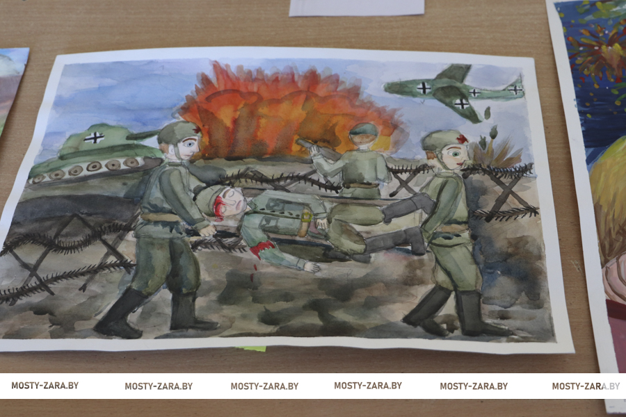 На областном уровне представят Мостовщину работы Анастасии Лазуты «Казнь разведчицы» (7-9 лет), Софии Кондратович «Раненый солдат» (10-12 лет) и Ирины Агей «Возвращение с фронта» (13-15 лет). Все эти ребята посещают детскую школу искусств.