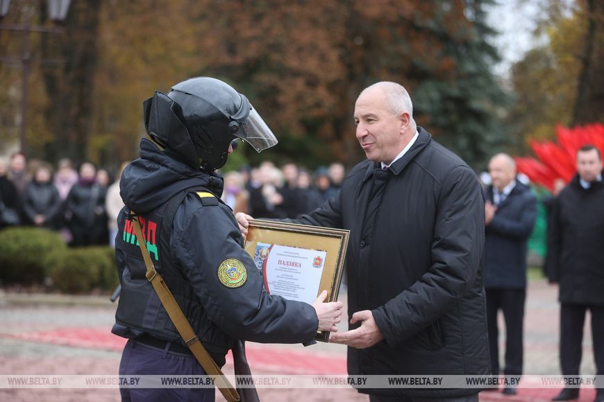 Торжественным митингом у Братской могилы советских воинов и партизан в Гродно в 73-ю годовщину создания подразделений охраны Министерства внутренних дел сотрудники Гродненского областного управления Департамента охраны МВД почтили память героев, павших в годы Великой Отечественной войны, передает корреспондент БЕЛТА.
