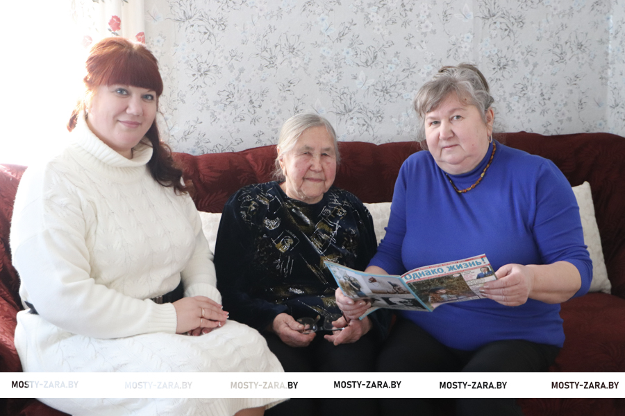 – Ничего плохого сказать о своих детях, внуках и правнуках не могу – приезжают, навещают, помогают. Но они живут в Гродно, а Марина – рядом. Золотой души человек, приветливая, безотказная, порядочная и бесконечно добрая. И книги из библиотеки нам привезёт, снег почистит и дров принесёт, воды из колодца достанет, а перед праздниками весь дом вычистит – и всё это быстро, умело, аккуратно. Моё самочувствие всегда улучшается даже просто от встречи и общения с ней. Слава Богу, что в нашем государстве есть такая нужная социальная служба, а у нас – такая помощница, – говорит Елена Иосифовна Олешкевич.