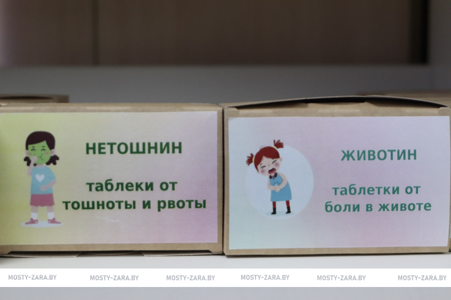 Белые халаты и бейджи, приспособления для приготовления лекарств, муляжи лекарственных препаратов с весёлыми и понятными названиями («Заживин», «Болеутолин», «Антисморкин», «Простудин»), специально разработанные бланки для рецептов и штампы с логотипом проекта, игрушечные фонендоскоп и тонометр – какому ребёнку не понравится такая игра, где всё по-взрослому?!