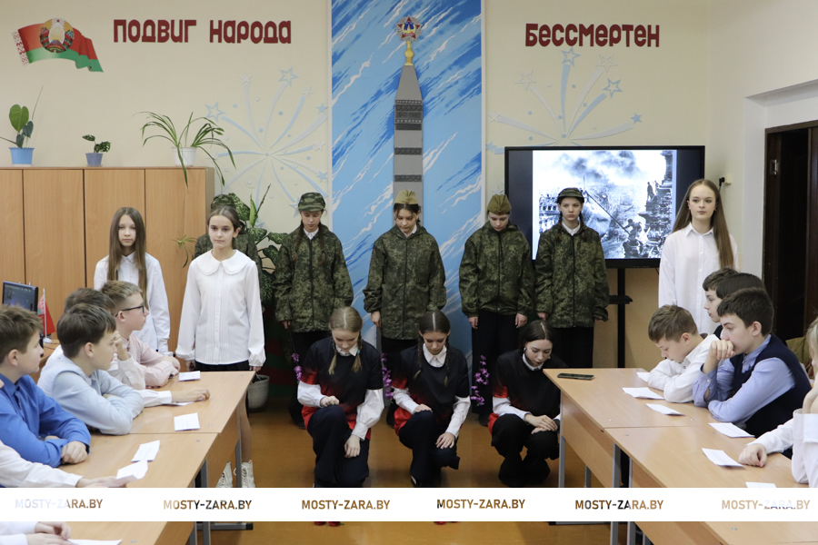 На лицах учащихся второй городской школы, которые стали участниками диалоговой площадки «Без срока давности: сожжённые деревни Мостовского района», читается страх и боль. Девчонки будто слышат из объятого пламенем сарая в Хатыни плач детей и мольбы матерей о помощи. Мальчишки втихаря сжимают кулачки: они тоже встали бы на борьбу с врагом, как это сделали многие их ровесники в те годы. Всех уносит в июнь 41-го небольшая театрализация в исполнении ребят военно-патриотического класса и клуба.