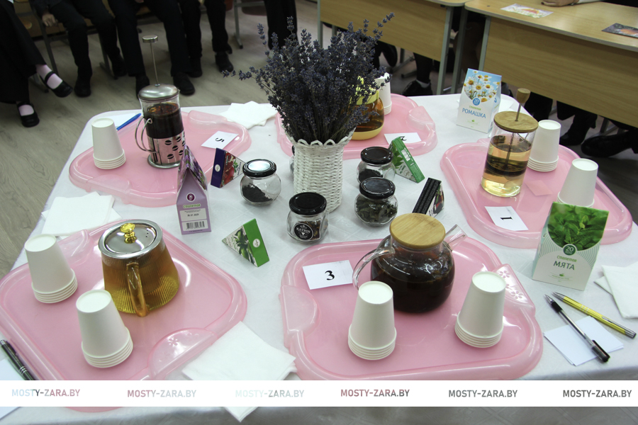 Во время мероприятия была проведена чайная церемония. Его участники пробовали душистые чаи из белорусских трав и пробовали угадать, из каких настоев они приготовлены и описывали свои ощущения.
