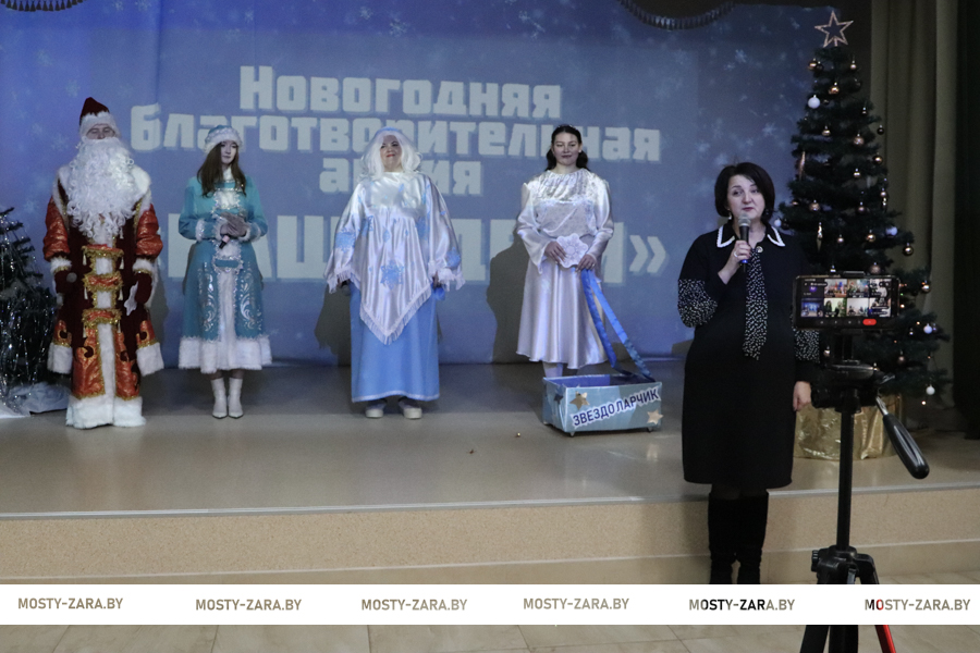 – Поздравляю всех с открытием акции, которая называется так тепло и красиво – «Наши дети». Потому что в нашей стране все дети – наши. Все мальчишки и девчонки должны иметь счастливое детство, а их мечты обязательно должны сбываться. На сегодняшнем нашем празднике сказочные герои прошли долгий путь, выполнили массу заданий, чтобы получить заветные звёздочки. Мы с вами тоже трудились целый год, чтобы праздник состоялся. Уверена, что вы хорошо учились, слушались взрослых, многие даже потрудились. А старания взрослых в это время были направлены на то, чтобы обеспечить уют и порядок в наших детских садах и школах, дать вам возможность учиться, а в будущем – получить профессию, чтобы вы могли заниматься спортом и творчеством. Всем желаю здоровья, пусть каждый из вас в этот Новый год найдёт под ёлкой то, о чём загадал и мечтал. Весёлых, счастливых, музыкальных и радостных вам новогодних дней и безопасных каникул!