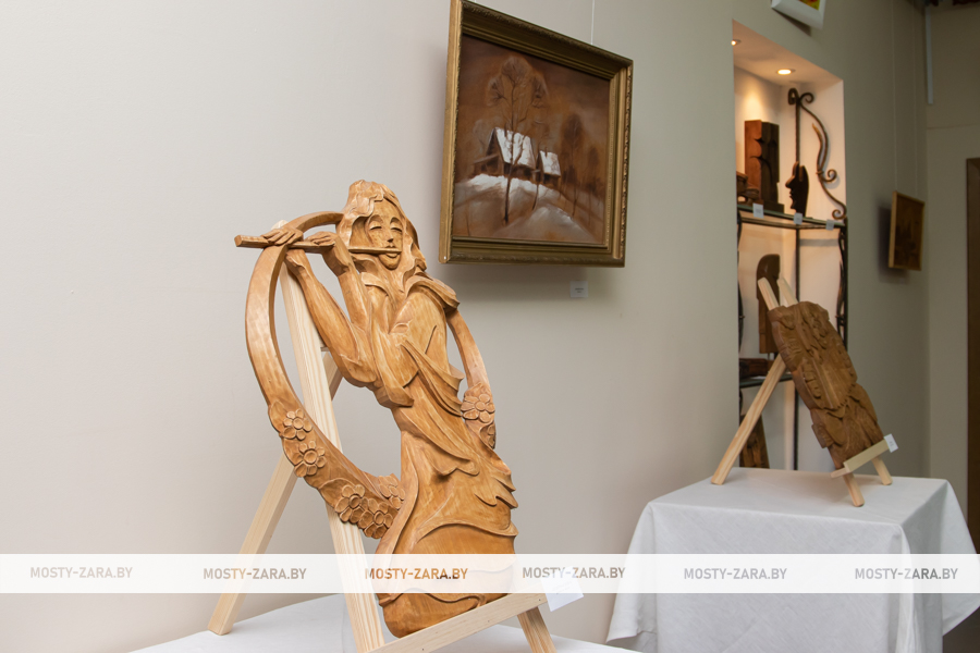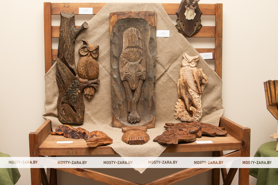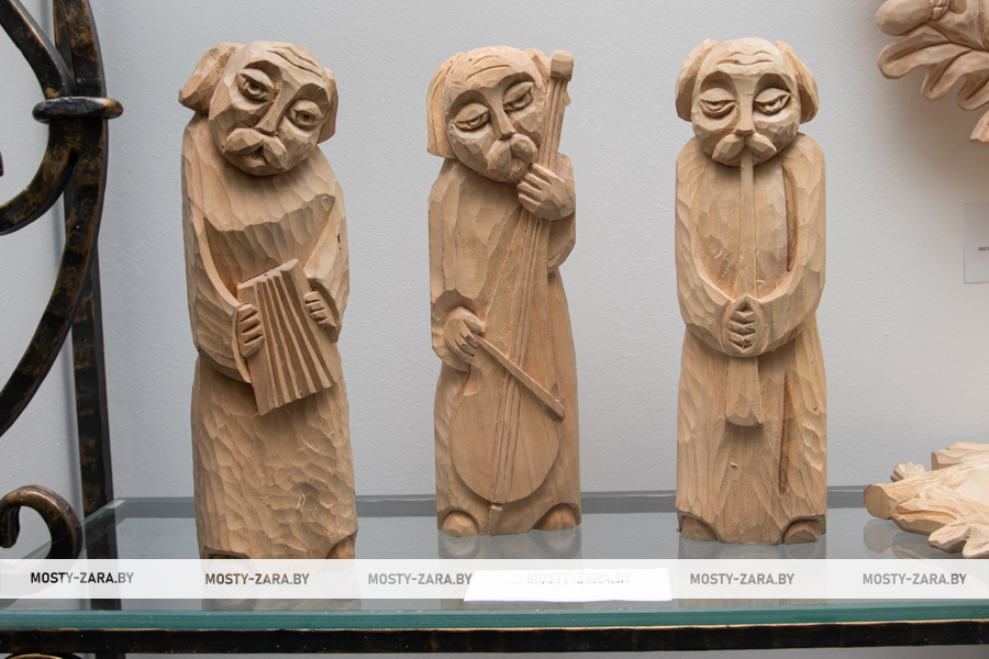 В творчестве Виктора Николаевича отчётливо прослеживаются белорусские мотивы. Резьба по дереву, пожалуй, лучше всего передаёт национальный колорит нашего искусства, и мастер ухватил его, например, в своём триптихе “Беларускія музыкі”. Нашлось место в его работах и анималистическим мотивам: выставку украсили также вырезанные из дерева совы и волк.