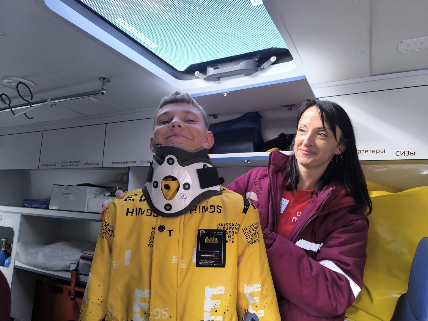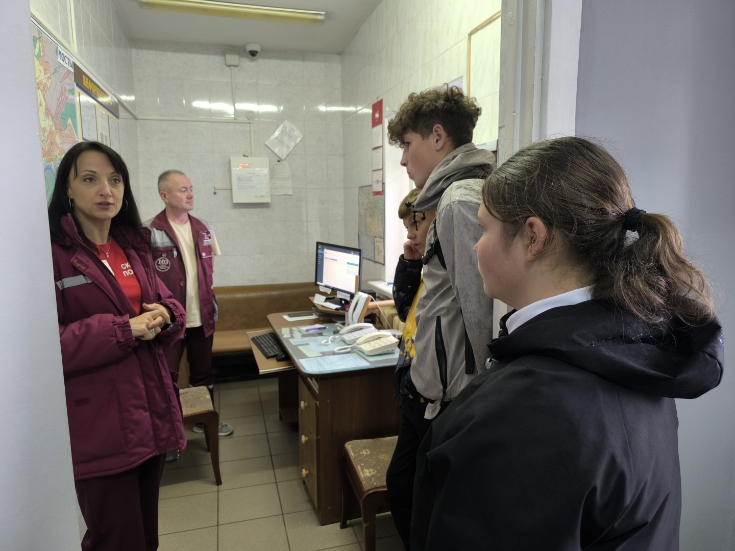 Также Марина Ивановна наглядно показала правила оказания первой помощи на тренажёрах, предложила попробовать самим подросткам сделать непрямой массаж сердца. Некоторые согласились и поняли, что это не так легко, как показывают в кино. Дальше ребята отправились знакомиться с работой современных аппаратов в специализированной машине реанимации. Кроме того, учащиеся смогли понаблюдать за работой диспетчера станции скорой помощи и узнать правила вызова неотложки.
