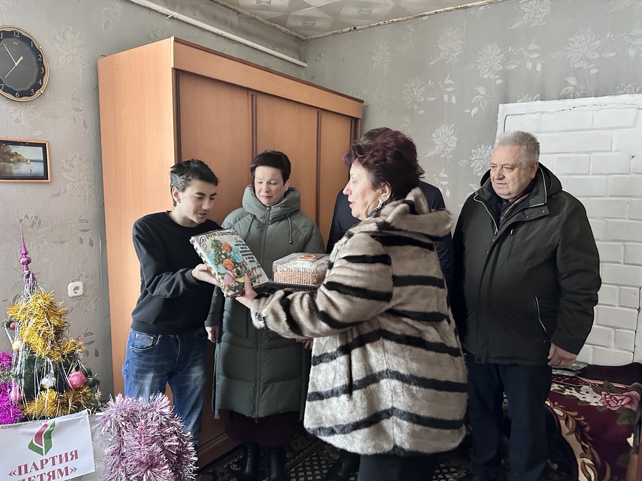 31 декабря, в канун самого радостного для всех ребят праздника – Нового года – председатель районного Совета депутатов, председатель районного отделения партии Валерий Табала, депутат Палаты представителей Национального собрания Республики Беларусь Надежда Хальцова, председатель Куриловичского сельсовета Сергей Касперович и другие члены партии посетили дом семьи Антона Сончика, учащегося 11 класса Куриловичской средней школы.