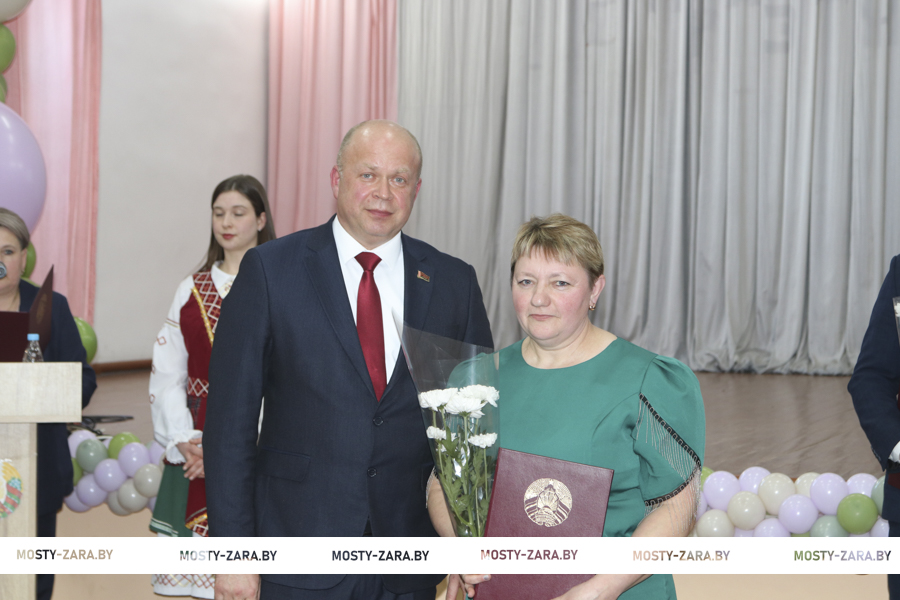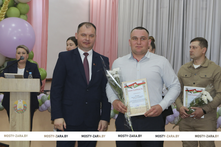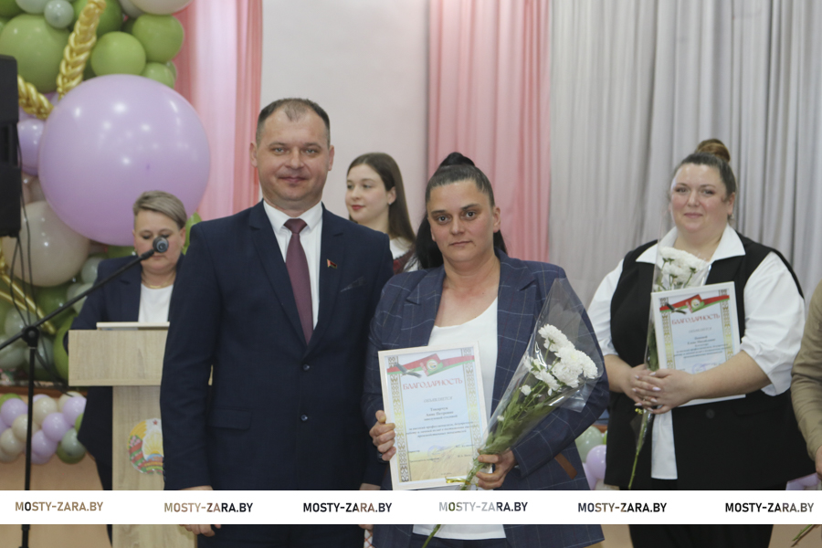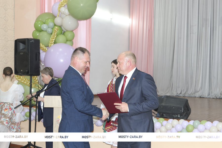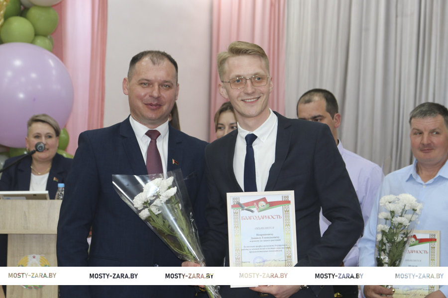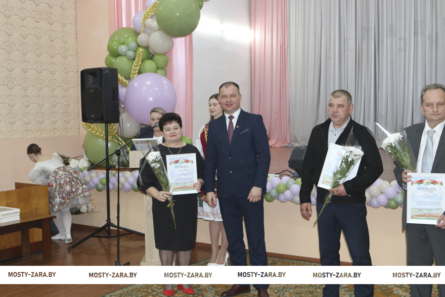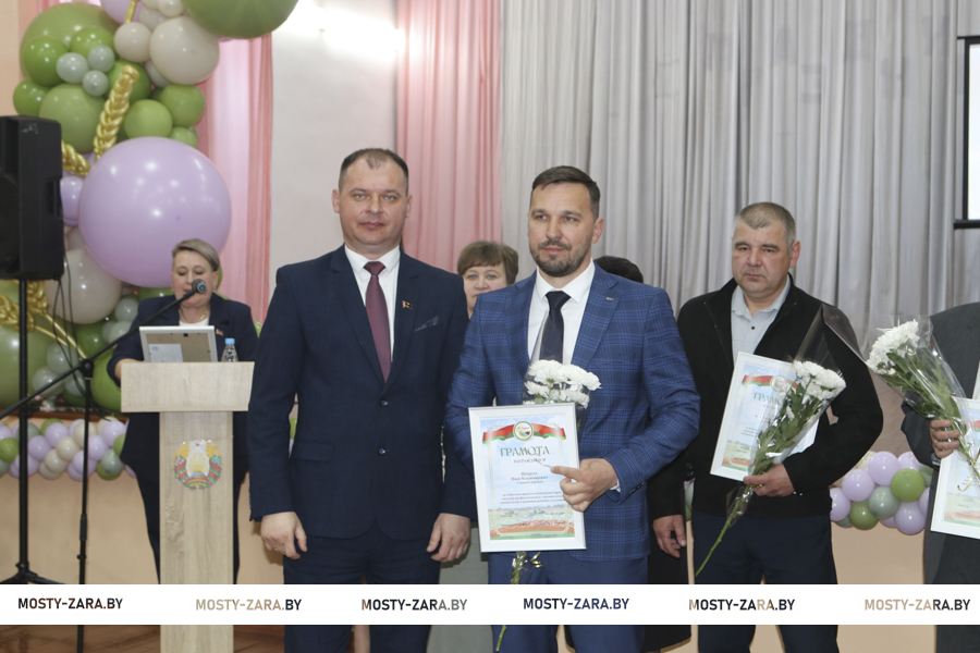 Глава района вручил награды лучшим работникам хозяйства. Почётной грамотой Мостовского райисполкома награждён заместитель директора Андрей Лешкевич, кладовщик Ольга Корней, Благодарность председателя райисполкома объявлена оператору машинного доения Анне Базевич, трактористу-машинисту Александру Каленчуку.