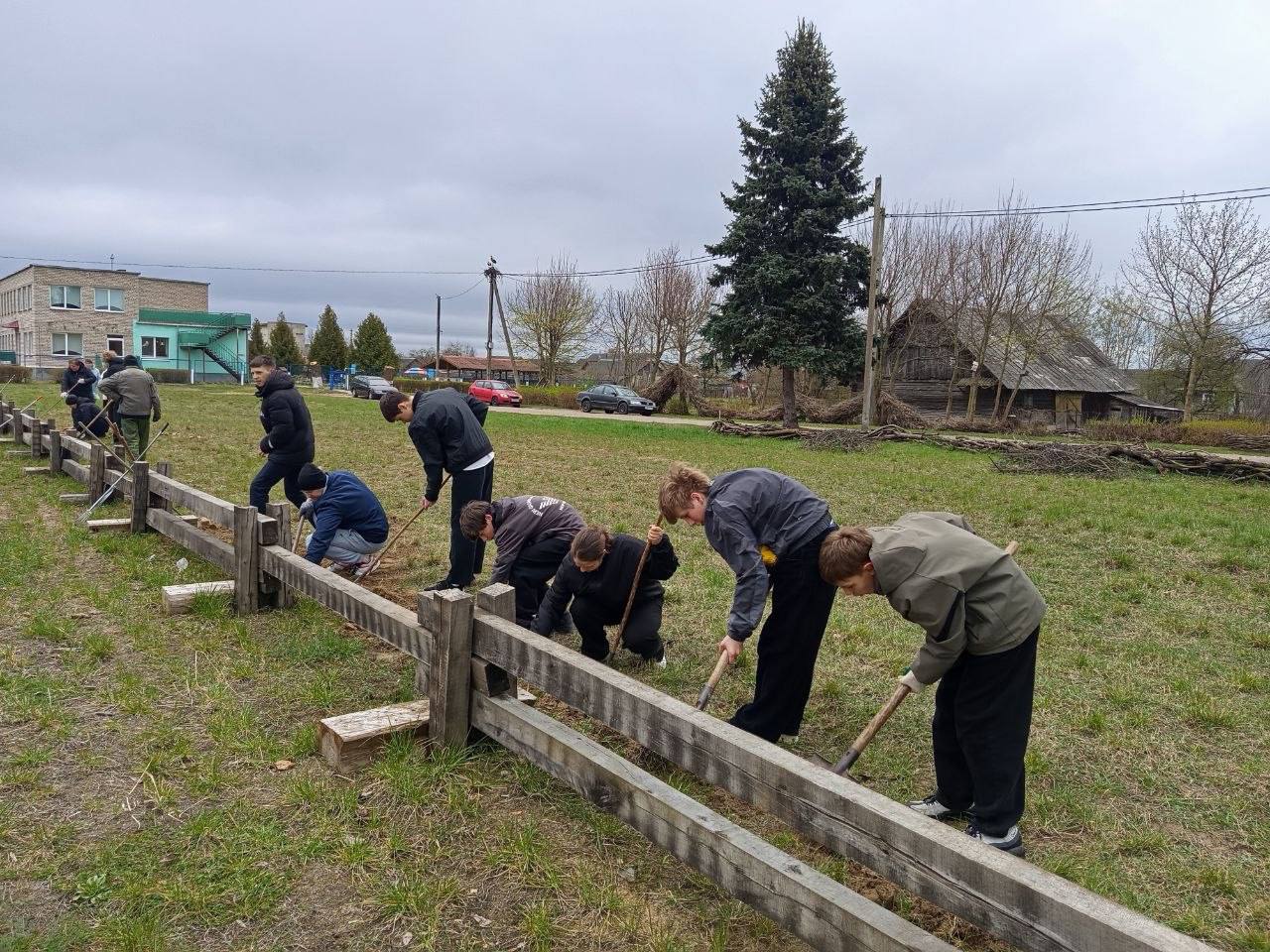 Дружно трудились на республиканском субботнике также коллектив Правомостовской средней школы вместе с учащимися. Их внимание было обращено на местную достопримечательность – ленд-ард-объект.