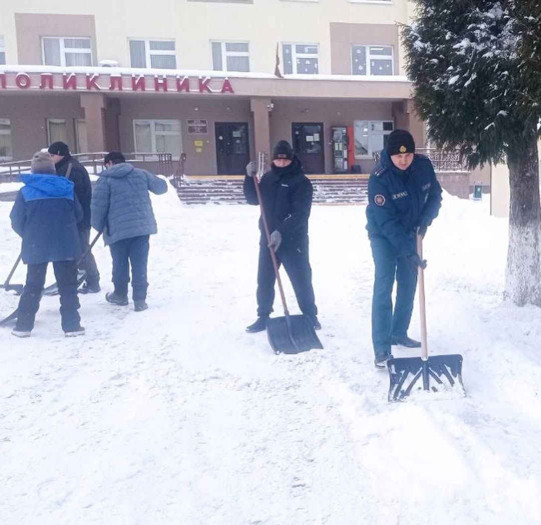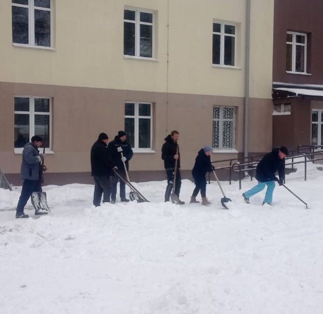 Совместными усилиями с уборкой снега справились быстро и легко, даже замерзнуть не успели.