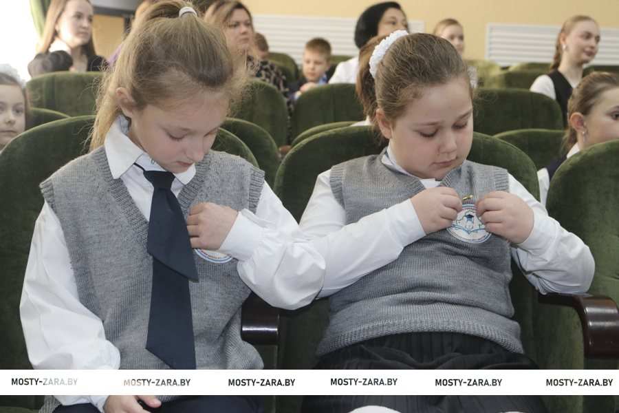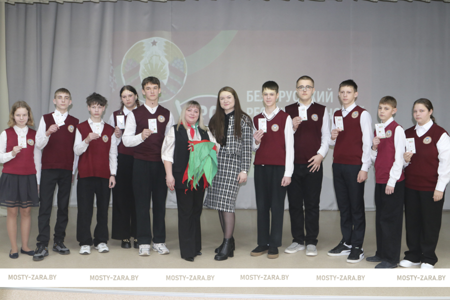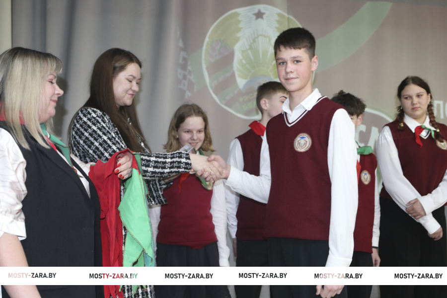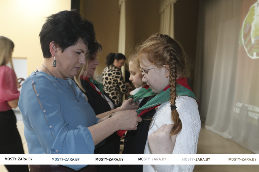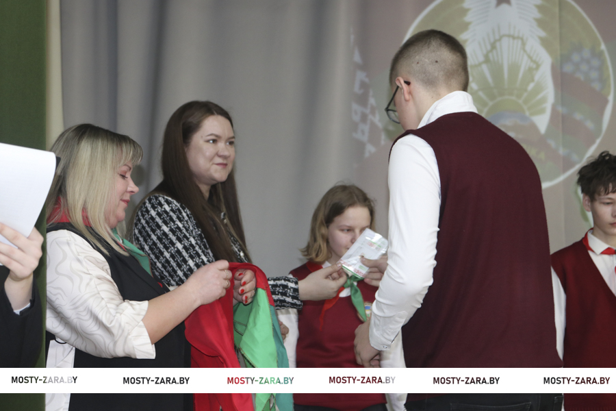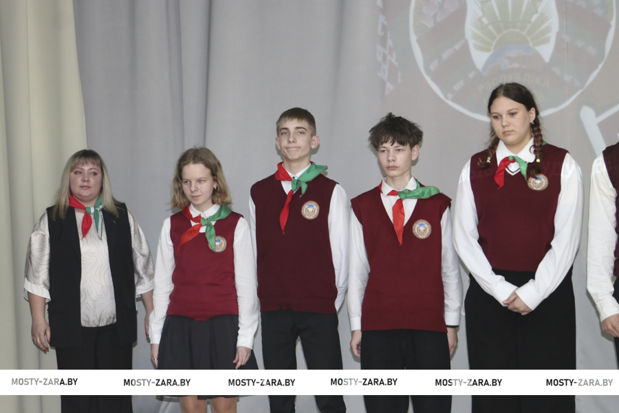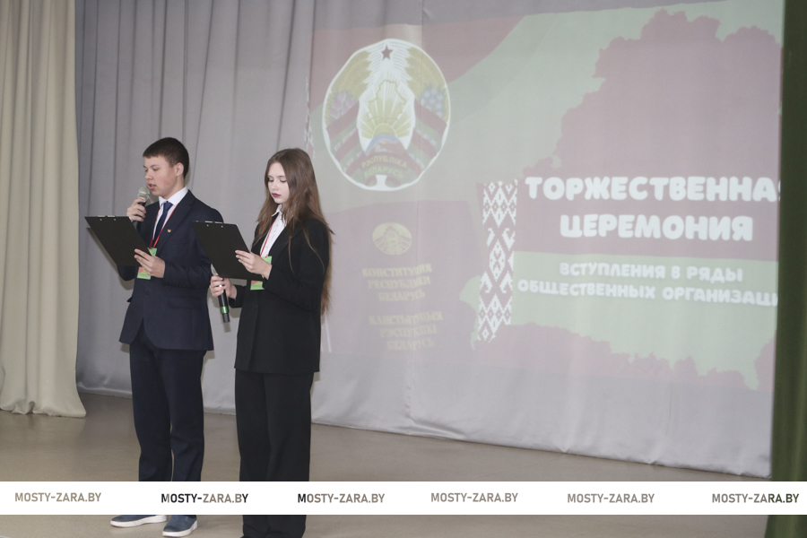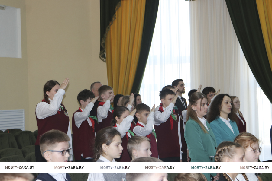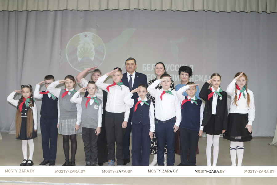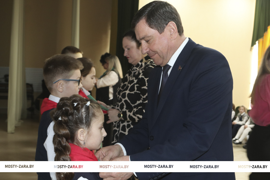 В торжественной обстановке при поддержке старших товарищей они произнесли клятвы и получили значки, галстуки, партийные билеты из рук руководителей организаций: председателя Мостовского районного Совета депутатов, председателя Мостовского районного отделения Белорусской партии «Белая Русь» Валерия Табала, главного специалиста управления образования Инны Новицкой, активного члена РОО «Белая Русь», слушателя Академии управления при Президенте Республики Беларусь, обучающейся в рамках проекта РОО «Белая Русь» «Знак качества» Надежды Венской, первого секретаря Мостовской районной организации ОО «Белорусский республиканский союз молодёжи» Екатерины Выдрич. А право прикрепить октябрятские значки было предоставлено активистам ученической палаты Молодёжного парламента при Мостовском районном Совете депутатов Артёму Кравцевичу и Полине Прокопене, и детской палаты БРПО Юлии Щержене и Анастасии Заяц.