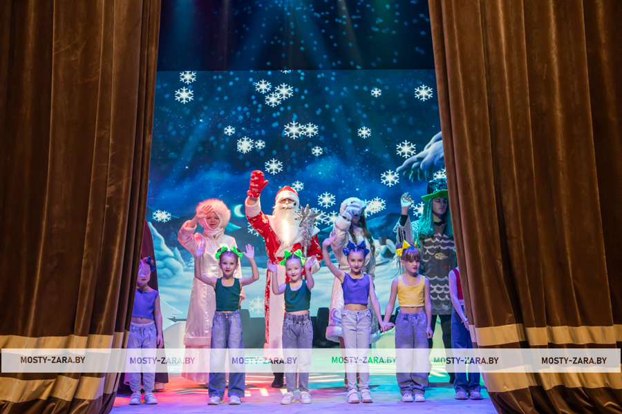Представление во многом адаптировано для современных детей, которые на нём не заскучают: популярные мелодии в социальных сетях вплелись в новогоднее настроение, которое, как оказалось, было совсем рядом. Свои мотивы привнесли и ребята из детского коллектива «Зорачкі» (руководитель ‒ Анастасия Лисай), с которыми зрители и станцевали зажигательный флешмоб.