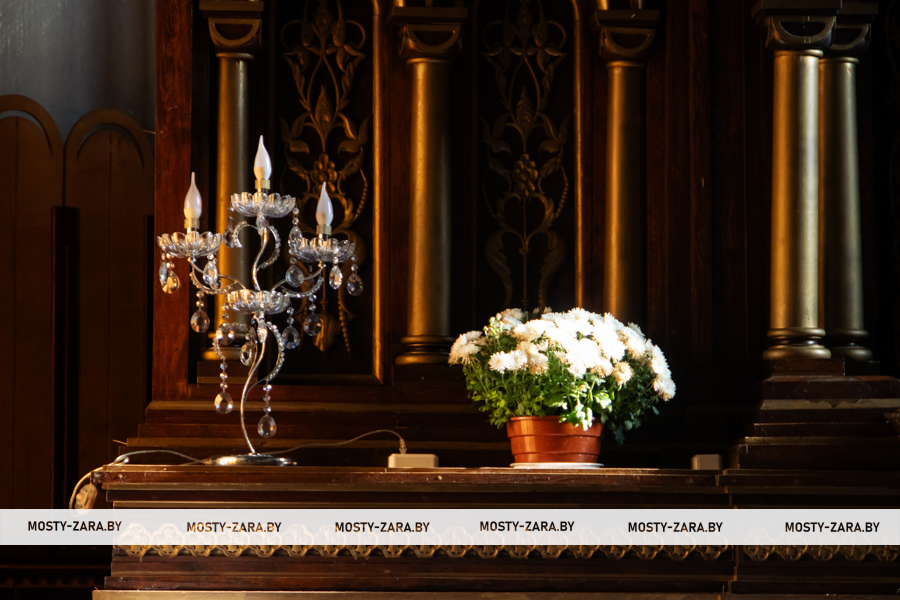 Об этом, кстати, рассказала нам прихожанка из Лунно Ирина Хомко, которая приходит наводить порядок в костёле и приносит свежие цветы к алтарю.