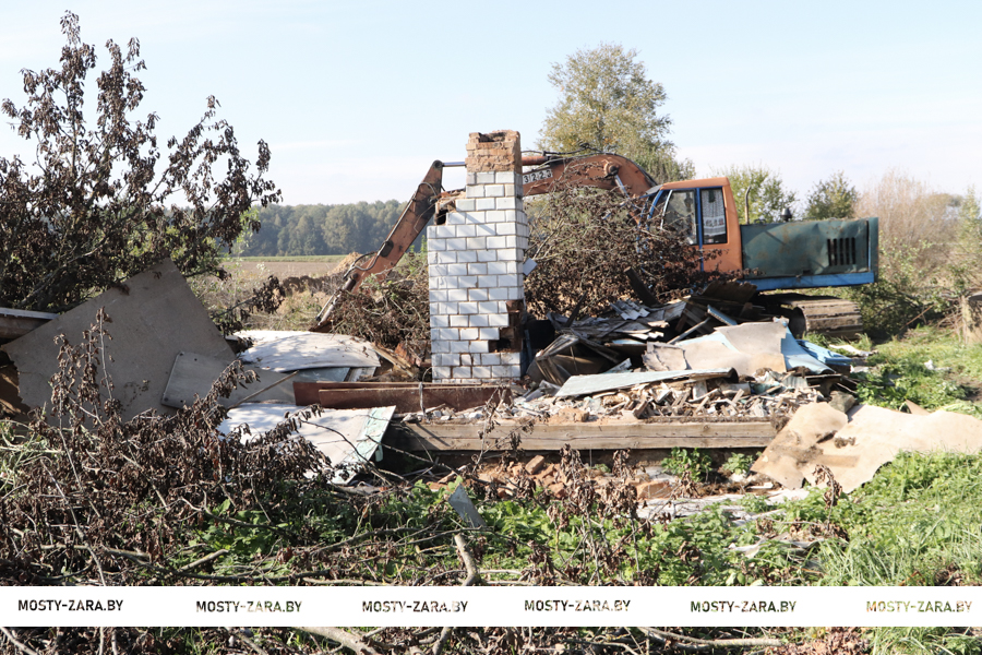 Подтверждение этих слов находим в деревне Миклошовцы Дубненского сельсовета, куда нас пригласила председатель Елена Рогацевич. Здесь ведутся работы по сносу пустующего дома. Когда-то в нём кипела жизнь, топилась аккуратно сложенная печь, люди мечтали о будущем. Печально наблюдать, как под напором экскаватора всё это превращается в груду строительного и бытового мусора. Через улицу, указывает рукой Елена Викторовна, ещё одна деревенская «сирота», судьба которой скоро решится в суде.