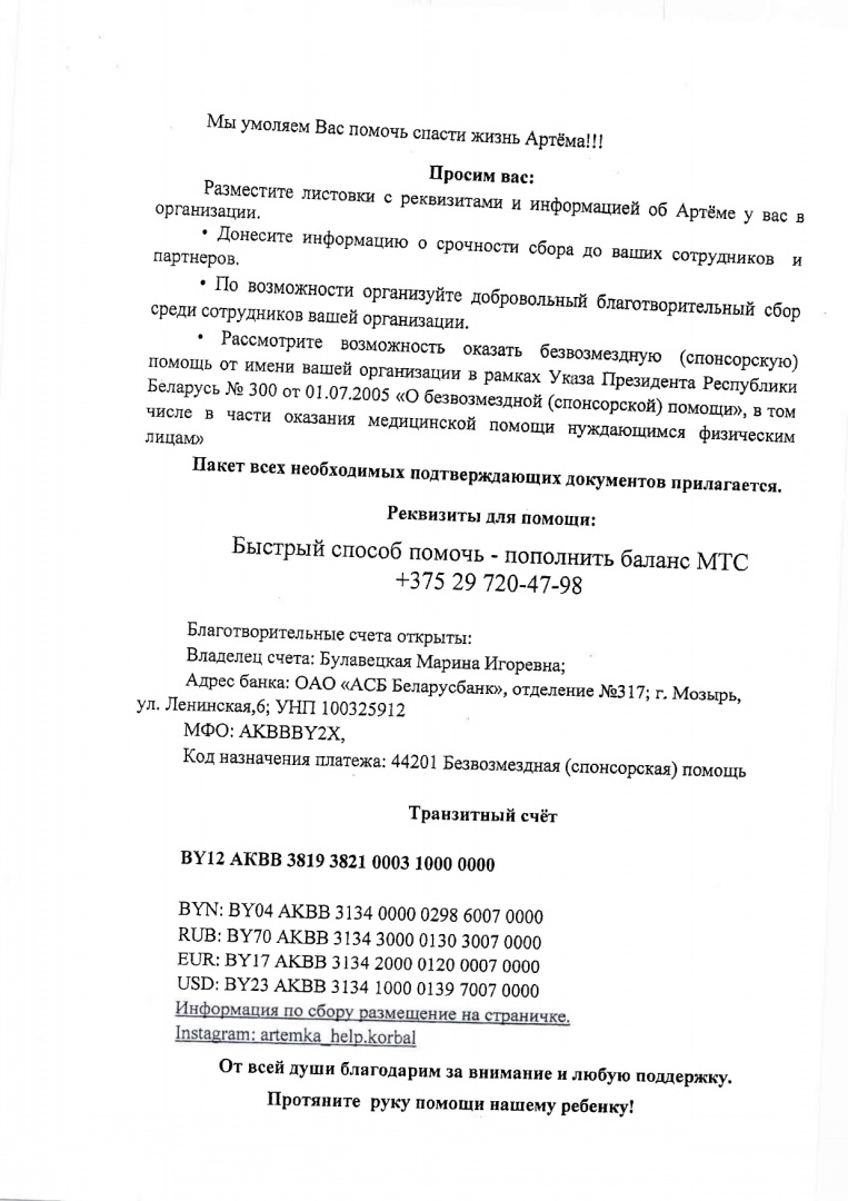Сбор средств идёт очень медленно, а времени почти не осталось. Любая помощь — даже самая маленькая сумма — может приблизить Артёма к спасительной инфузии.