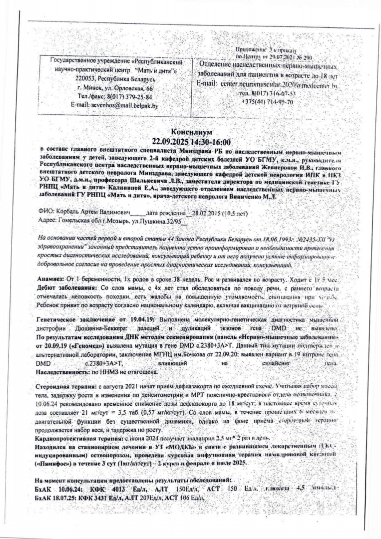 Шанс на спасение есть — это новейший препарат ELEVIDYS, появившийся в 2023 году. В 2024 году были сняты возрастные ограничения на его применение, и теперь Артём может получить это лечение. Препарат вводится один раз в жизни, но он способен остановить разрушение мышц и сохранить уже имеющиеся функции организма.