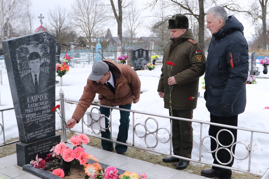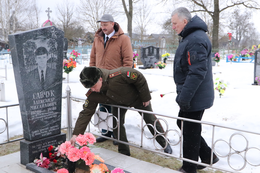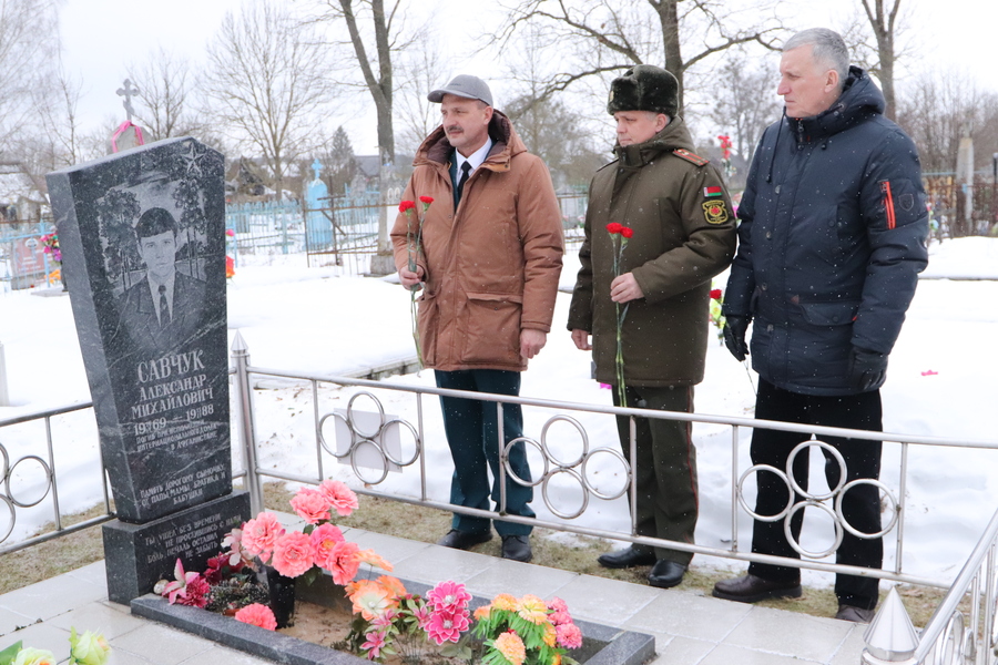 Пока команды состязались, военный комиссар Сергей Ларченко, заместитель председателя районной организации ОО «Белорусский союз ветеранов войны в Афганистане» Николай Молчанов и воин-интернационалист Владимир Бабич посетили могилу Александра Савчука в д. Стукалы, возложили цветы, почтили минутой молчания память погибшего товарища.