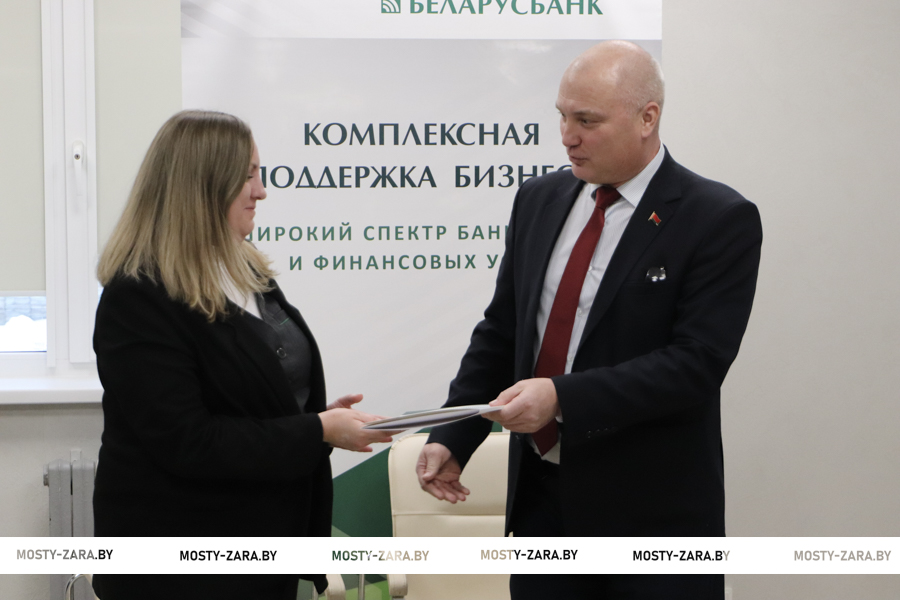 Председатель райисполкома поблагодарил руководителя ЦБУ за мурал, что украсил городскую многоэтажку, и оказанную спонсорскую помощь банка Мостовской ЦРБ в виде автомобиля для перевозки пациентов.