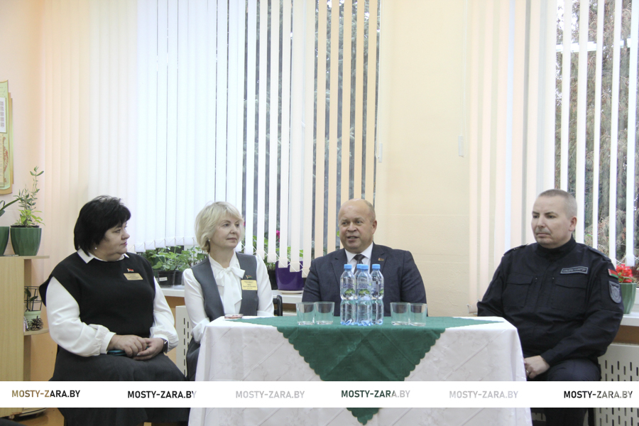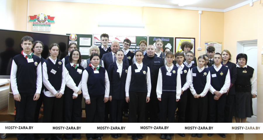 В гости к ребятам пришли председатель Мостовского райисполкома Андрей Санько и начальник районного отдела Следственного комитета Денис Калиновский.