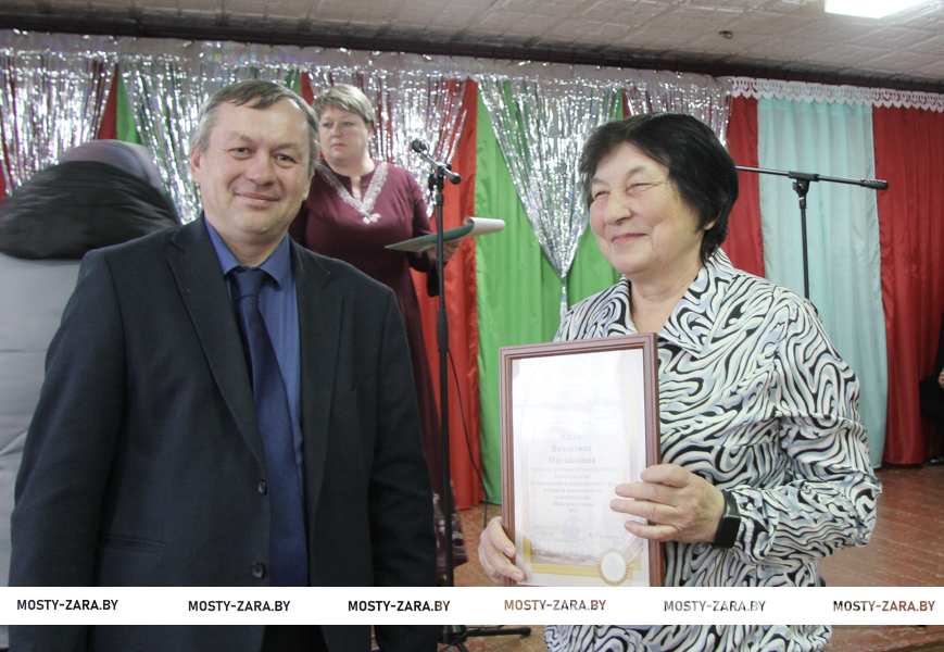 С Днём животновода поздравила участников торжества первый заместитель начальника управления сельского хозяйства и продовольствия райисполкома Наталья Романова. Она вручила Почётные грамоты районного Совета депутатов Виктории Жук и Галине Калоша, Дипломы передовиков районной профсоюзной организации работников АПК Сергею Ломако, Елене Головач, Александру Терешко и Михаилу Сарвасу.