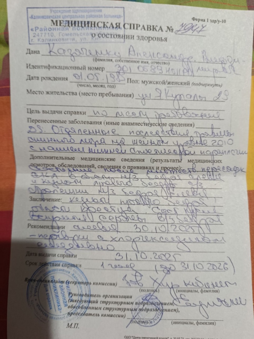 Средства можно перечислить на имя матери — Казаченко Тамары Васильевны (в связи с ограниченными возможностями передвижения заявителя):