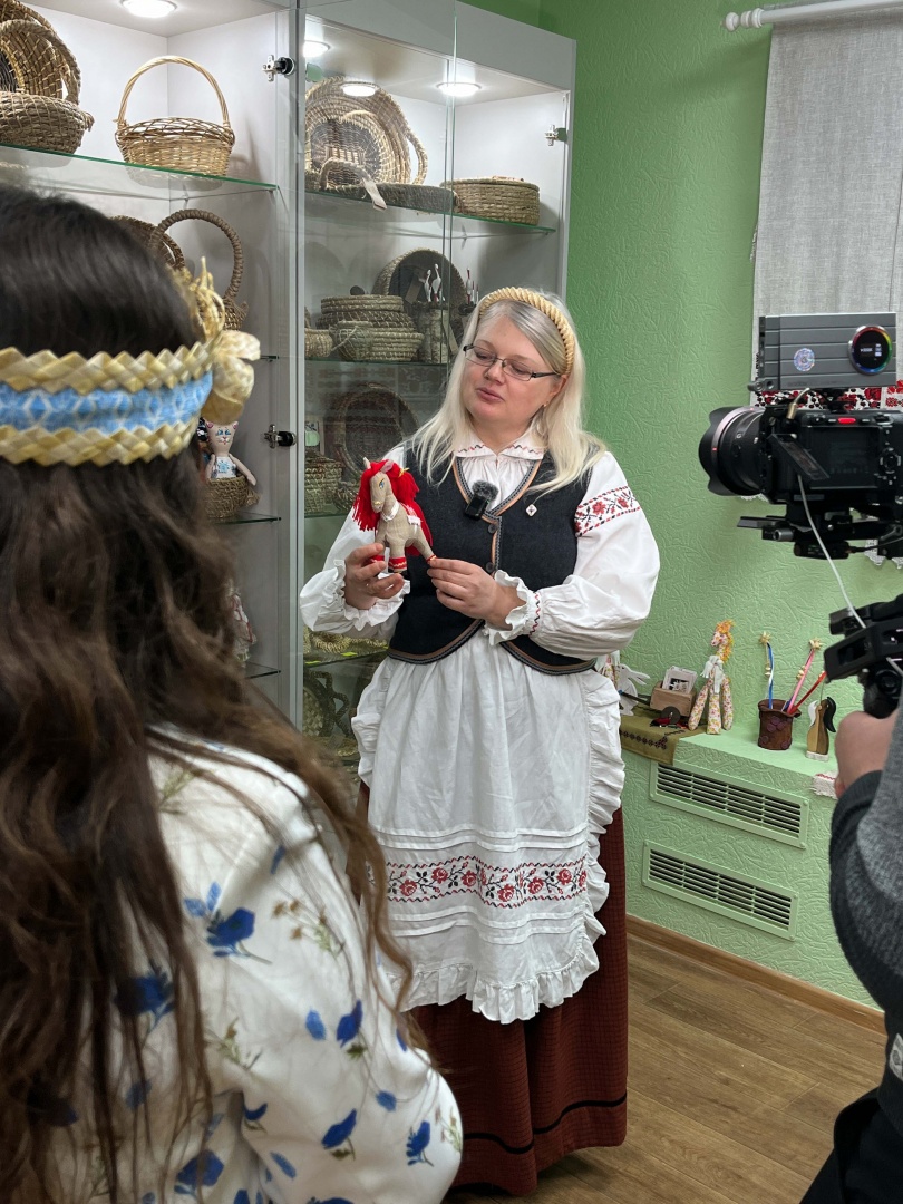 Следующая остановка ‒ вековые дубравы близ деревни Стукалы в Липичанской пуще, после чего съёмочная группа вернулась в Мосты: здесь, в районном центре культуры, для них организовали мастер-класс по травоплетению ‒ подобная техника, которой владеет Ольга Войтович, уникальна в Гродненской области. Елена Садовничая же презентовала гостям сувенирную лавку ‒ неудивительно, что журналисты ушли с полным пакетом покупок!