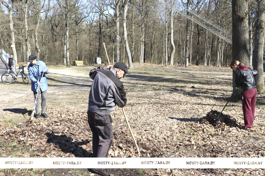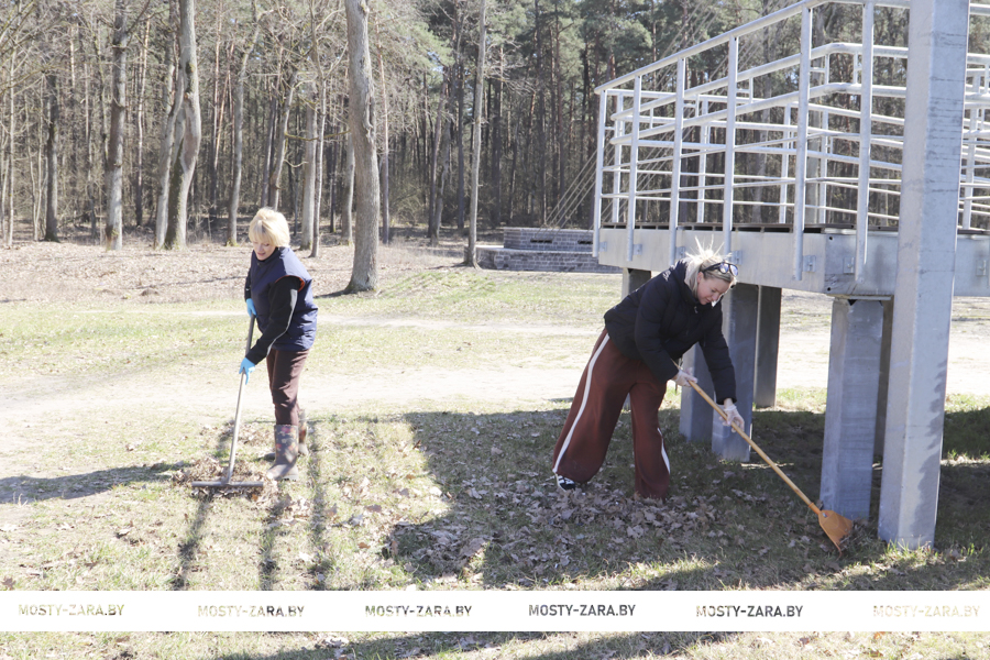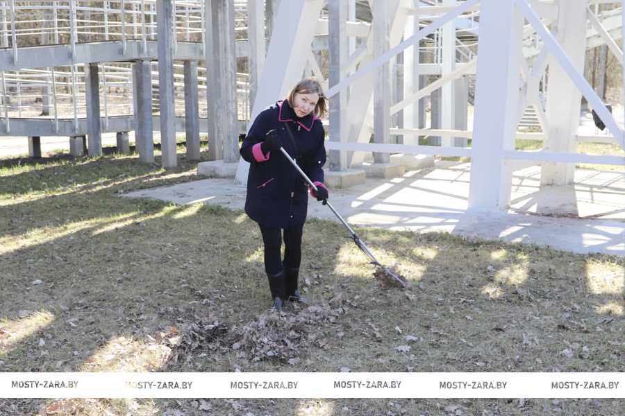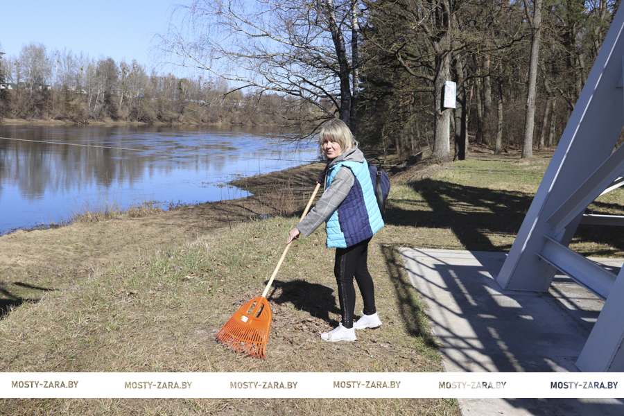 Работники райисполкома под руководством заместителя председателя Светланы Величко провели субботник у подвесного моста.