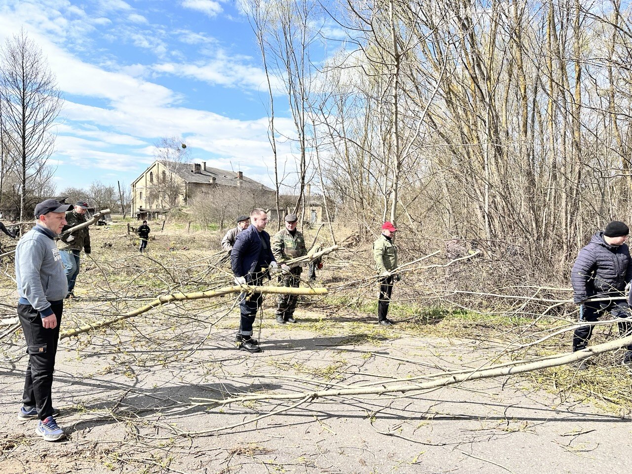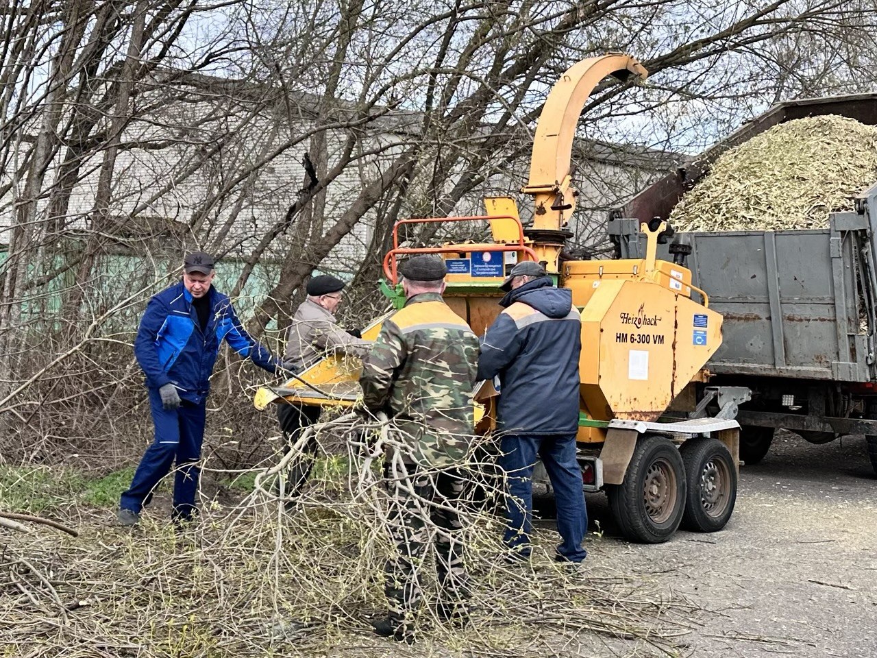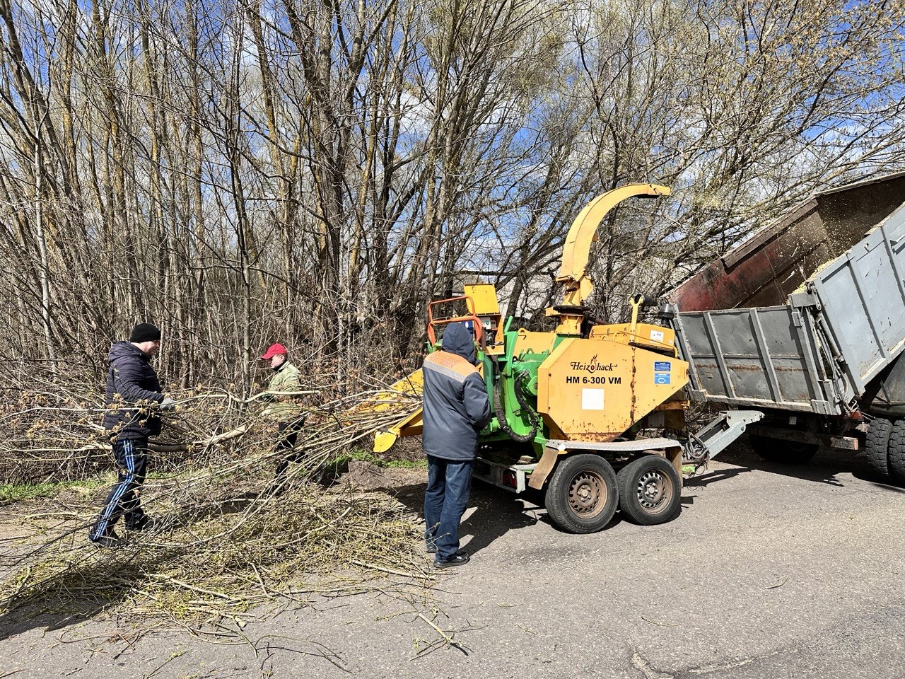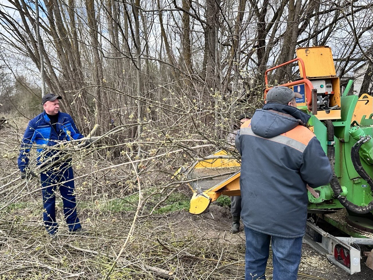 Крепкие мужские руки работали без устали. Кто-то пилил, кто-то выносил на дорогу, а кто-то подавал ветви в дробилку. Несколько часов работы и вот уже видны результаты – нет зарослей, проглядывает солнце, а следовательно земля начала дышать.