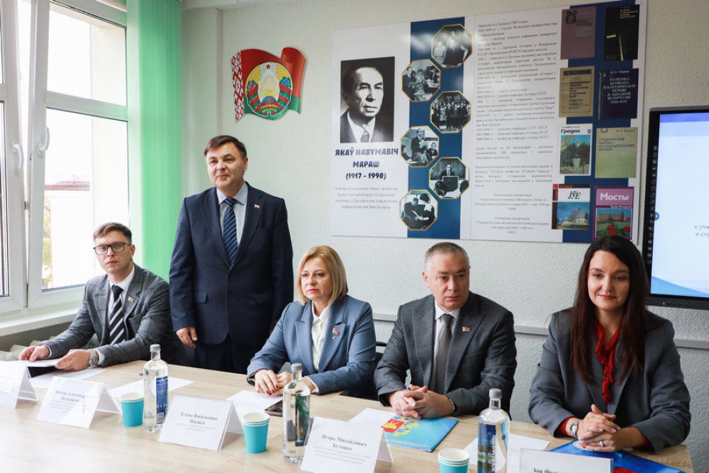 Во встрече приняли участие главные редакторы и молодые специалисты государственных СМИ Гродненской области, бывшие выпускники этого же вуза. В числе почётных гостей мероприятия – председатель областного Совета депутатов Елена Пасюта, начальник главного управления идеологической работы и по делам молодёжи облисполкома Игорь Булавко, декан факультета истории, коммуникации и туризма Гродненского государственного университета имени Янки Купалы Виктор Белозорович.