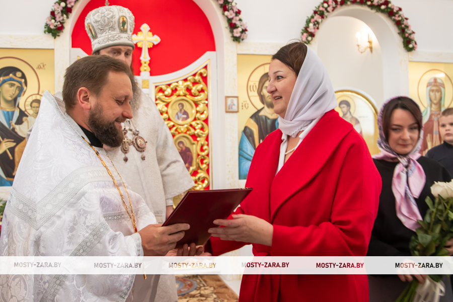 От имени районного исполнительного комитета и районного Совета депутатов со знаменательным событием прихожан Мостовского района поздравила заместитель председателя райисполкома Марина Давыдик.