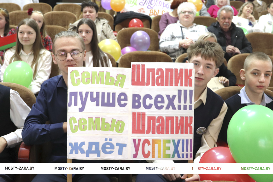 Интересно рассказала о своём роде семья Шлапик. Папа Юрий Юрьевич, работает вентилевым в ОАО «Мостовдрев» - является настоящей опорой и защитником для своей семьи. Мама Ольга Валерьевна работает учителем иностранного языка в средней школе № 5 г.Мосты имени Василия Леонтьевича Володося и сочетает в себе неиссякаемый запас любви и нежности, а так же педагога и организатора. В семье воспитываются трое несовершеннолетних детей. Максиму 15 лет, он учащийся 9 «В» класса средней школы № 5, член первичной организации ОО БРСМ, входит в состав волонтёрского движения районной организации Белорусского Красного Креста, активный участник школьных мероприятий, так же занимается в объединении по интересом «Волейбол». Вадиму 11 лет, занимается в объединении по интересом «Скалолазание» на базе средней школы № 5, посещает занятия в ансамбле гитаристов «Примавера» на базе районного центра творчества детей и молодёжи». Самая младшая Виолетта, ей 8 лет, учащаяся 3 класса, посещает художественное отделение Мостовской детской школы искусств. Он талантливо сыграл на гитаре для участников конкурса музыкальное произведение.