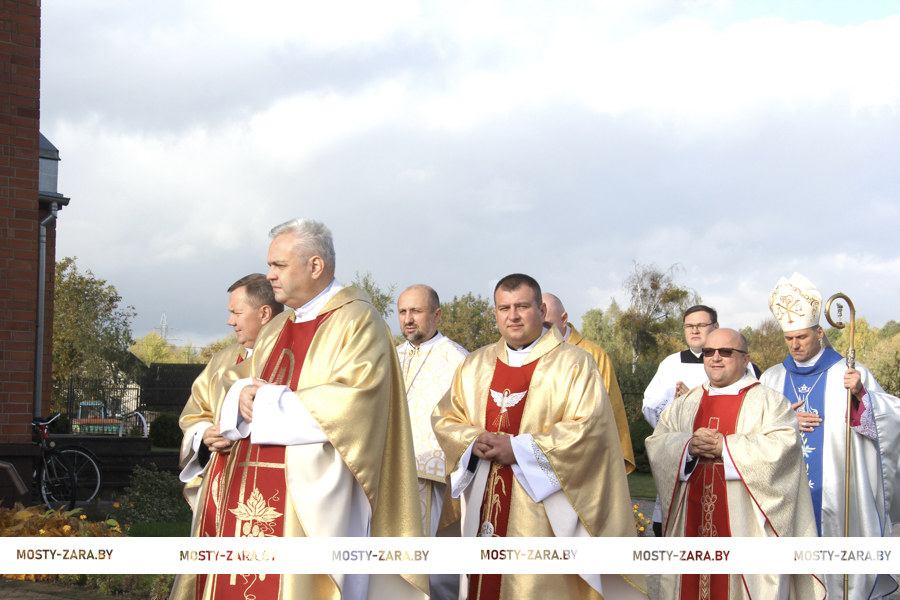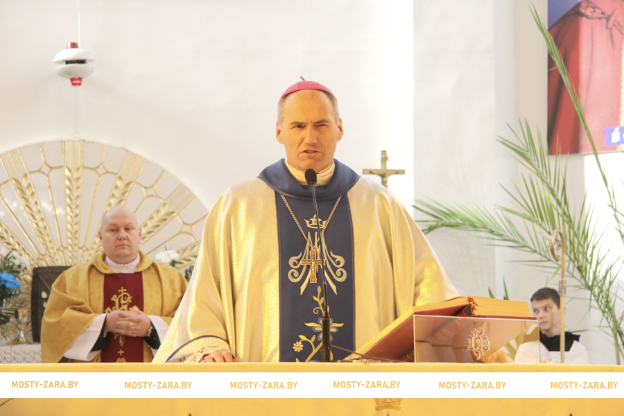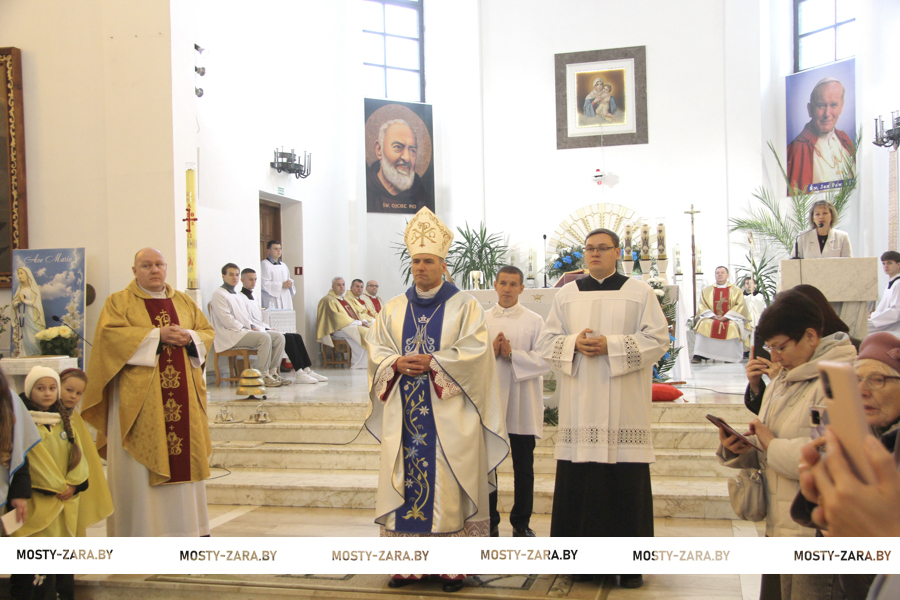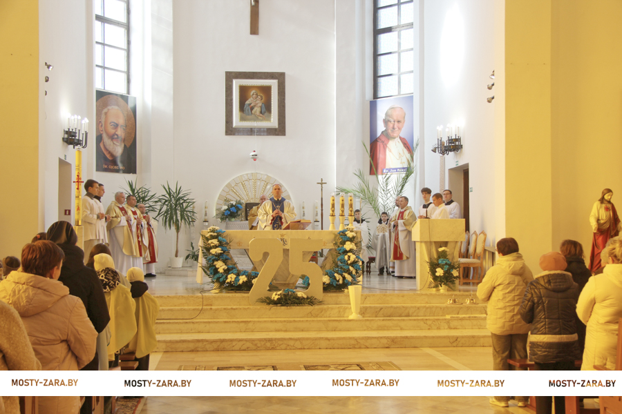 В Мостах под руководством епископа Витебского Олега Буткевича прошли юбилейные торжества по случаю 25-летия костёла Матери Божьей Трижды Чудесной.