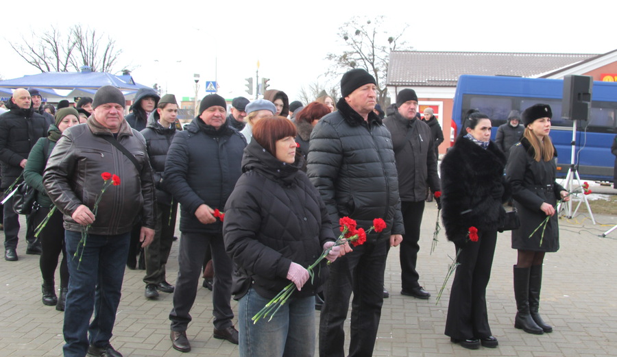 На митинг «Афганистан в судьбах наших земляков» у памятного знака на улице Советской в Мостах собрались участники боевых действий в Афганистане, руководство района, представители трудовых коллективов, партий, общественных объединений и организаций, силовых структур, молодёжь.