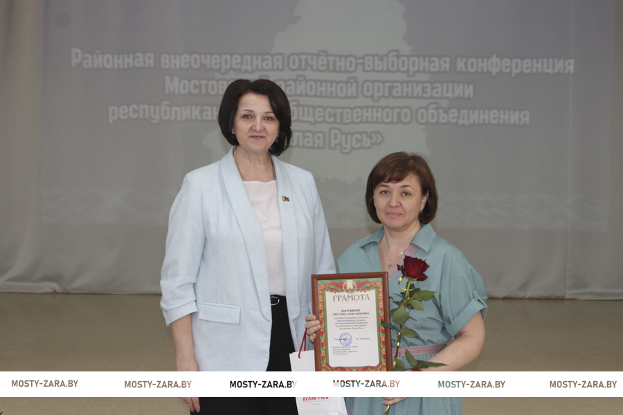 В ходе работы конференции был избран новый лидер районной организации. Председателем Мостовской районной организации РОО «Белая Русь» путём открытого голосования избрана заместитель председателя Мостовского райисполкома Марина Давыдик, а её заместителем – Екатерина Рекуть. Также избраны делегаты на VII внеочередную Конференцию Гродненской областной организации РОО «Белая Русь, которыми стали Марина Давыдик, Екатерина Рекуть, Наталья Шевчик, Сергей Мармыш.