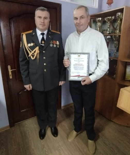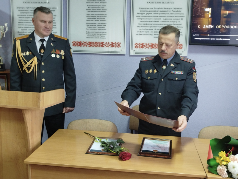 Присоединился к поздравлениям и председатель Совета ветеранов отделения и наградил юбилейными медалями ветеранов подразделения Виктора Лебедевича и Регину Алексейчик.