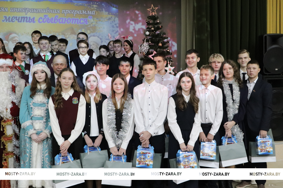 – Помните, что вы – гордость Мостовщины, настоящее и будущее нашей родной страны, – обратился к ребятам глава района Андрей Санько. – Хочу пожелать, чтобы в волшебный праздник Нового года все ваши мечты и желания сбылись. Крепкого всем здоровья, неиссякаемой энергии, вдохновения для новых открытий и свершений. Пусть каждый день будет наполнен радостью, положительными эмоциями, новыми знаниями, возможностями для реализации ваших смелых идей. Оставайтесь такими же добрыми, отзывчивыми, умными, весёлыми, творческими и успешными.