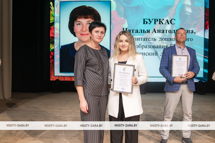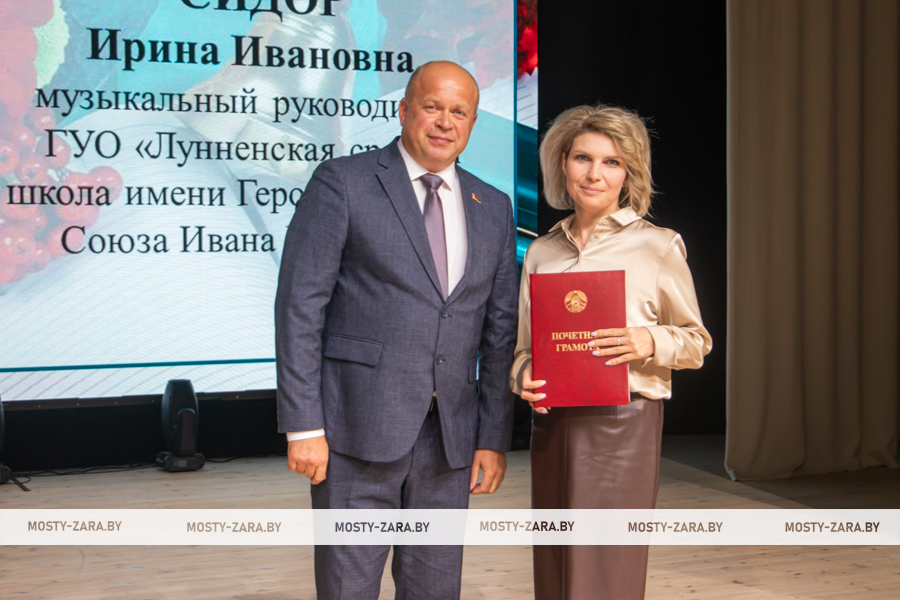 Добросовестность, творческий подход к делу, трудолюбие – все эти качества присущи награждённым Почётной грамотой Мостовского райисполкома: музыкальному руководителю Лунненской средней школы имени Героя Советского Союза Ивана Шеремета Ирине Сидор и директору средней школы №2 г. Мосты имени Героя Советского Союза В. П. Жукова Александру Старовойтову. Благодарность председателя Мостовского райисполкома объявлена воспитателю дошкольного образования детского сада №3 г. Мосты Татьяне Скиба.