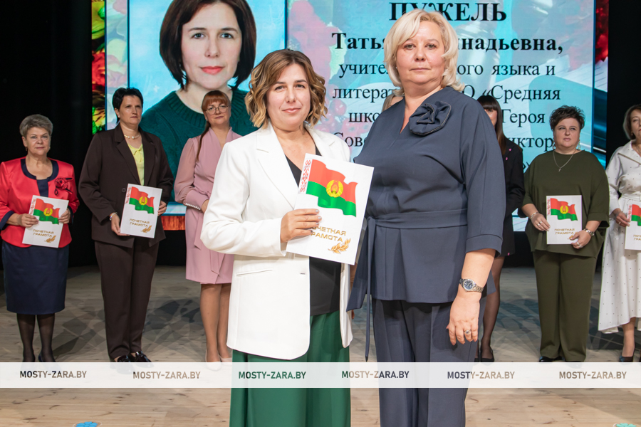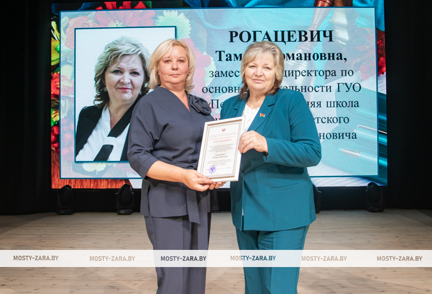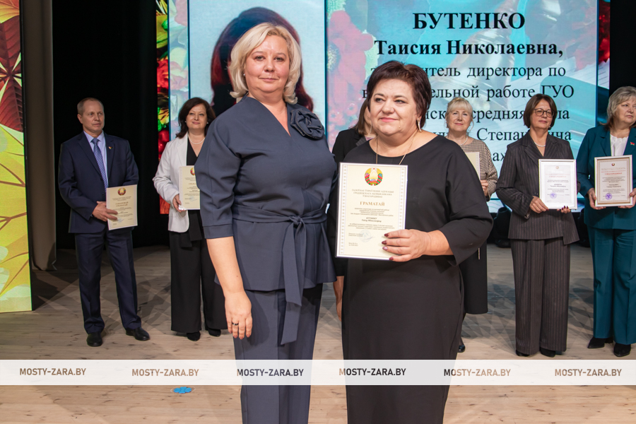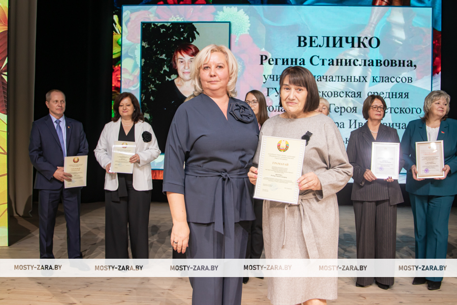 – Быстро меняющийся мир заставляет учителей постоянно заниматься саморазвитием, расширять собственный кругозор, совершенствовать методы работы, осваивать новые технологии. Сегодня учителя нашего района успешно готовят учащихся к различным конкурсам и олимпиадам, активно внедряют инновации, постоянно модернизуют свои педагогические практики, а опыт многих можно назвать уникальным, – подчеркнула заместитель начальника управления образования Мостовского райисполкома Инна Болтрукевич, поздравляя коллег с праздником.